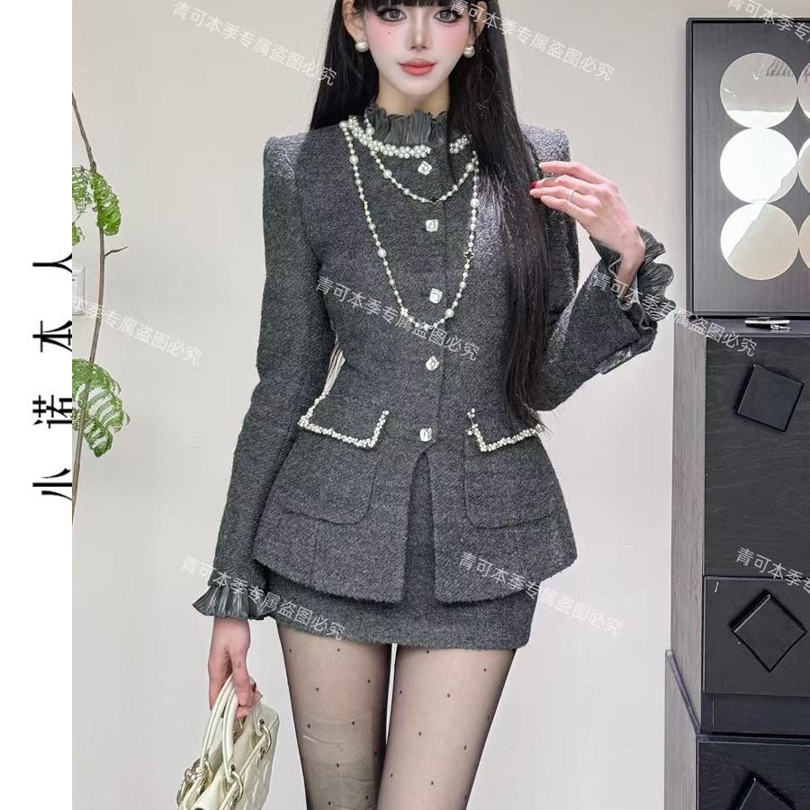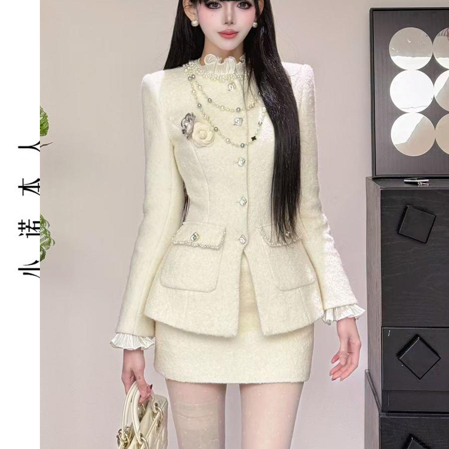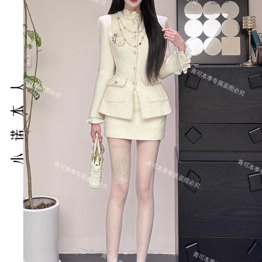 小诺本人千金感轻奢套装收腰气质名媛小香风外套高腰包臀裙241252