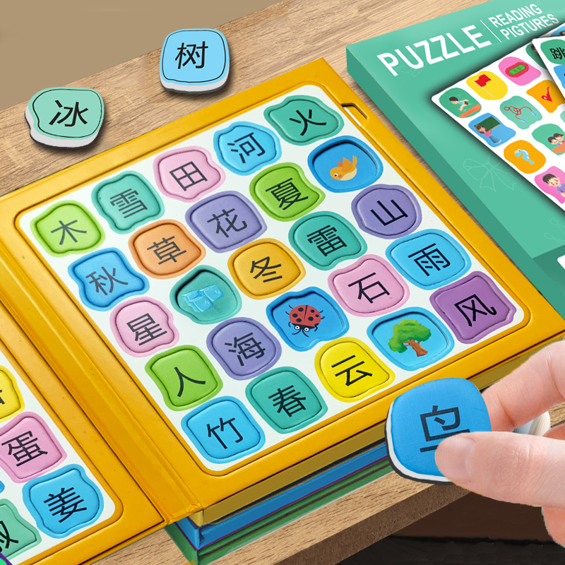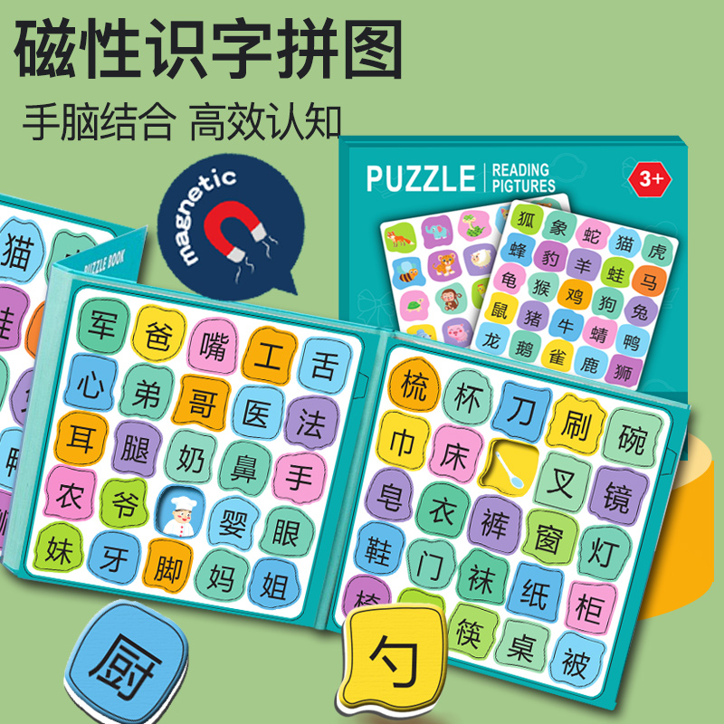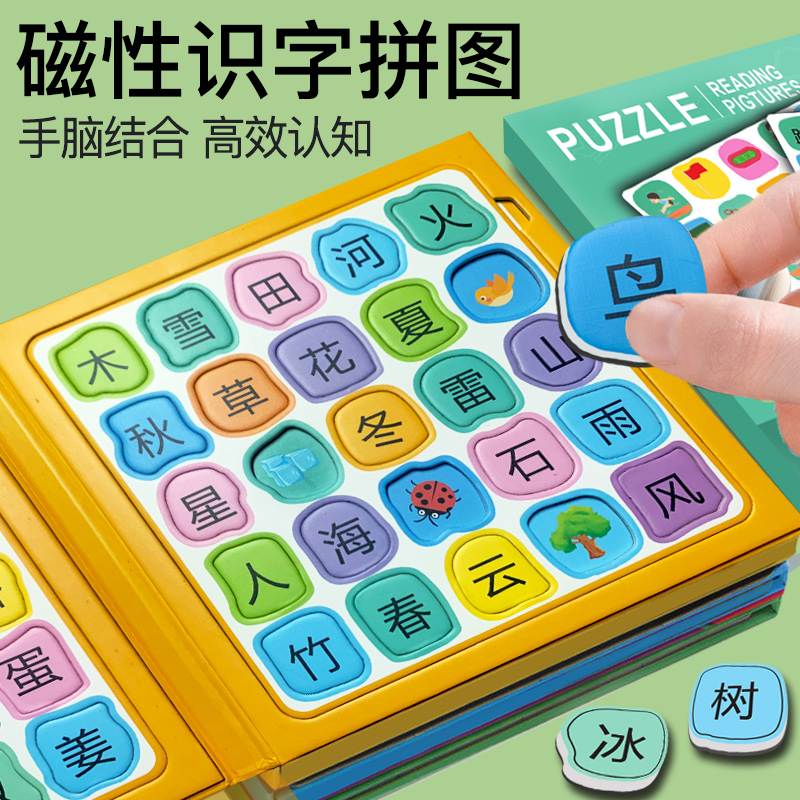 儿童磁力识字拼图幼儿早教宝宝趣味认字板3到6岁2一5益智汉字玩具