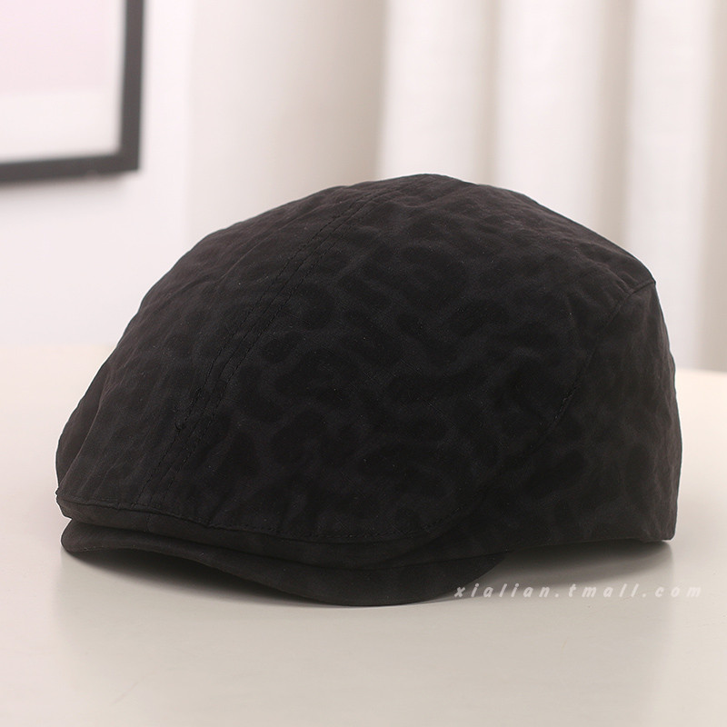 日系新款豹纹大头围前进帽女夏季速干显脸小鸭舌贝雷帽复古画家帽