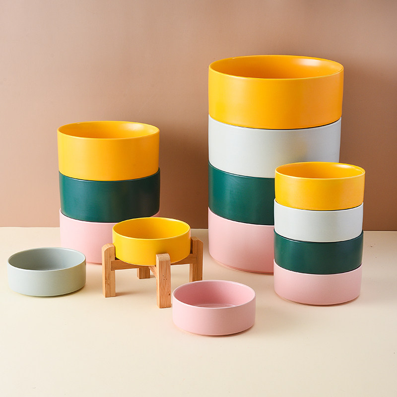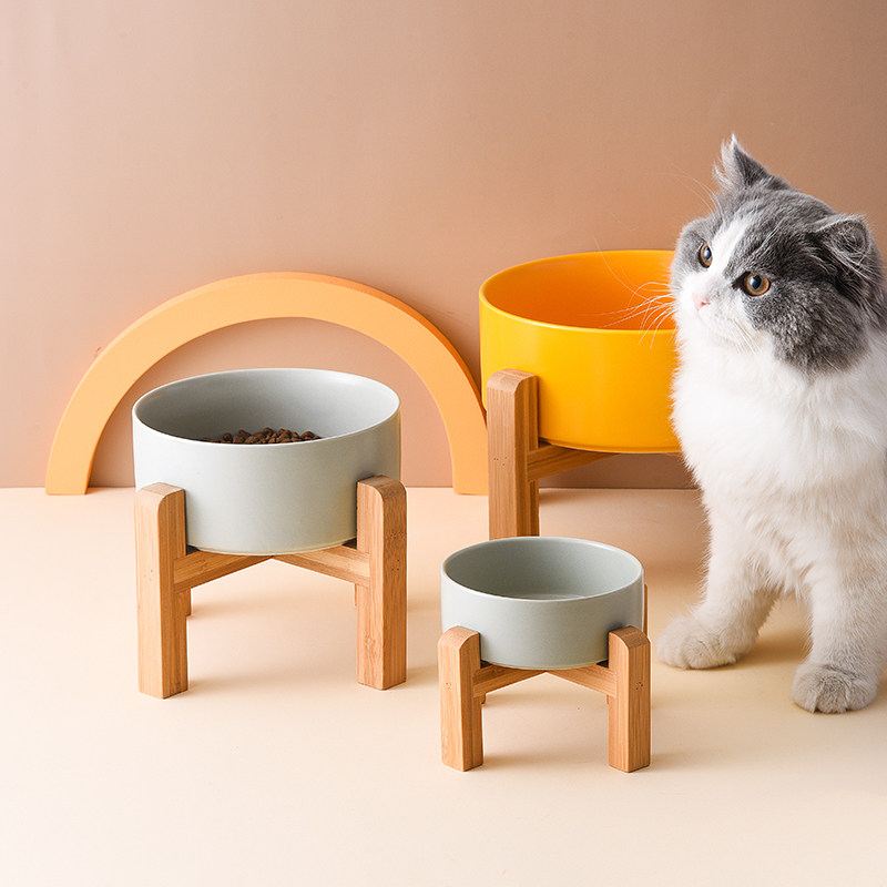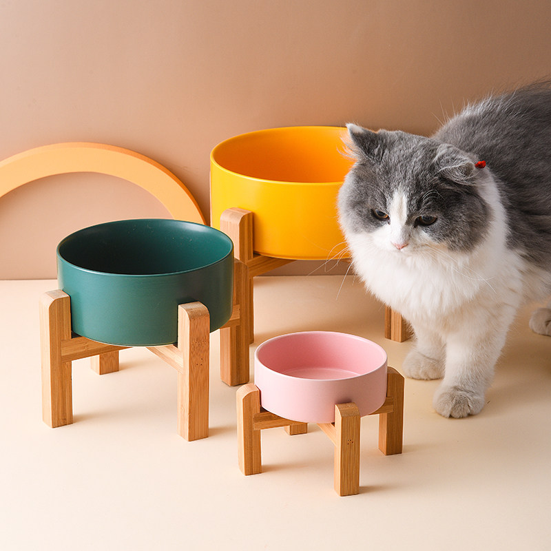 玛特利陶瓷宠物碗加高木架护颈椎大口径猫碗狗碗防打翻猫食盆水碗