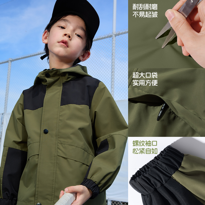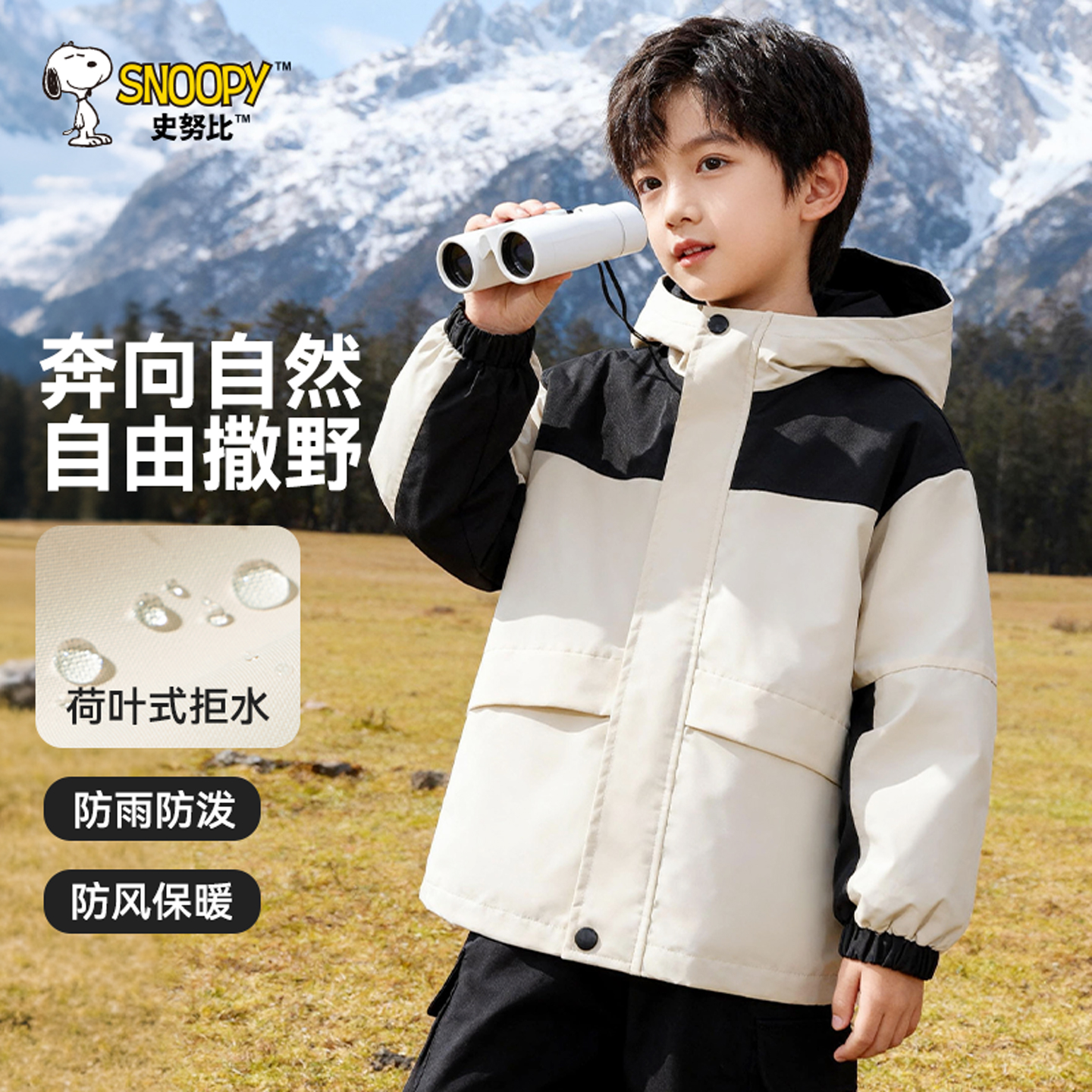史努比男童冲锋衣外套男孩秋季军绿夹克男大童秋装儿童户外防风衣
