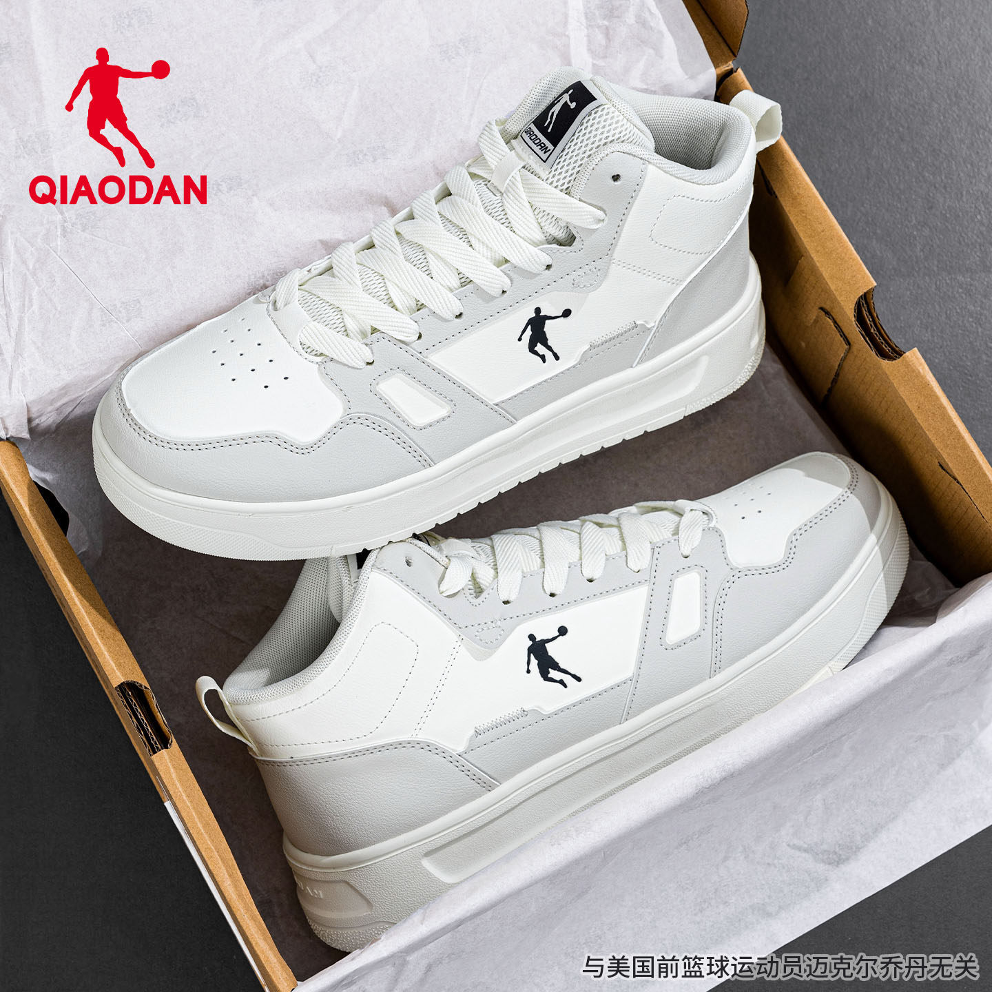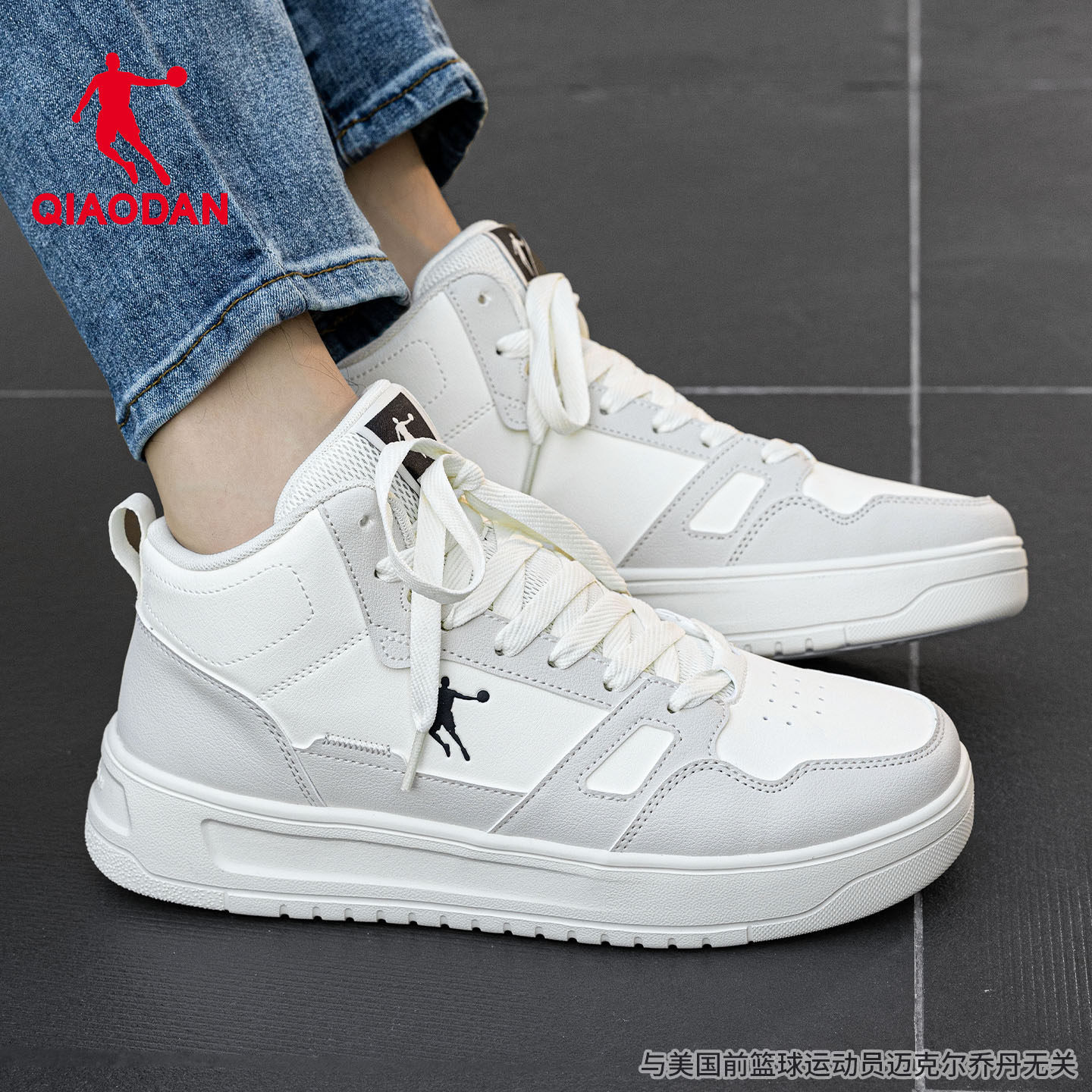 乔丹皮面男鞋板鞋厚底高帮旅游休闲鞋秋冬款防泼水鞋子男士运动鞋