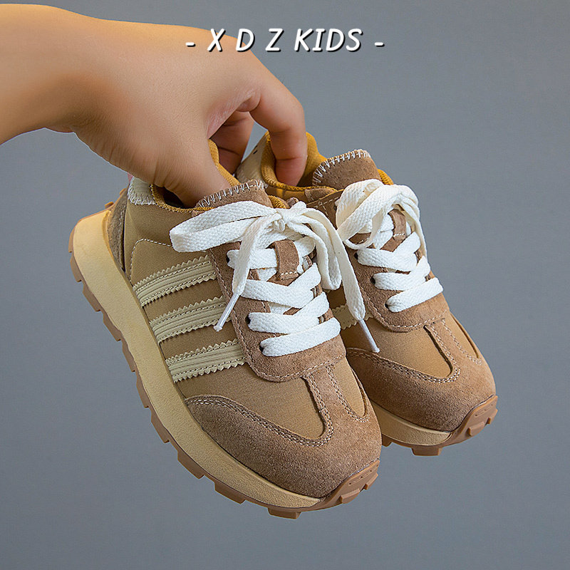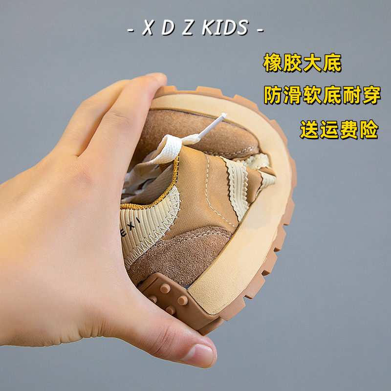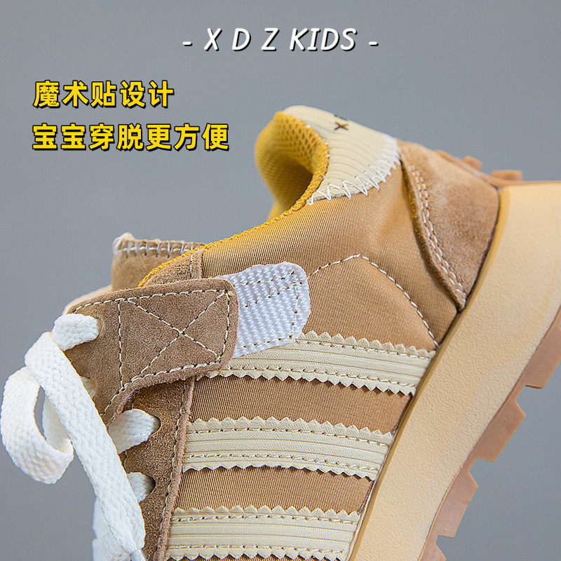 女童鞋子秋季运动鞋2025秋冬新款真皮童鞋中大童魔术贴男童老爹鞋