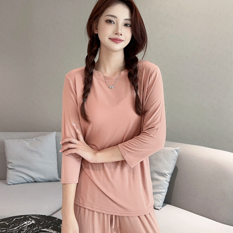 春秋薄款打底衫莫代尔七分袖宽松圆领T恤女上衣百搭外穿纯色大码