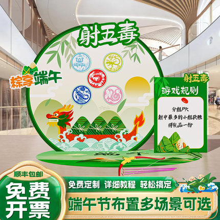 端午节射五毒游戏道具场景布置装饰主题活动钓圈粽子投壶活动kt板