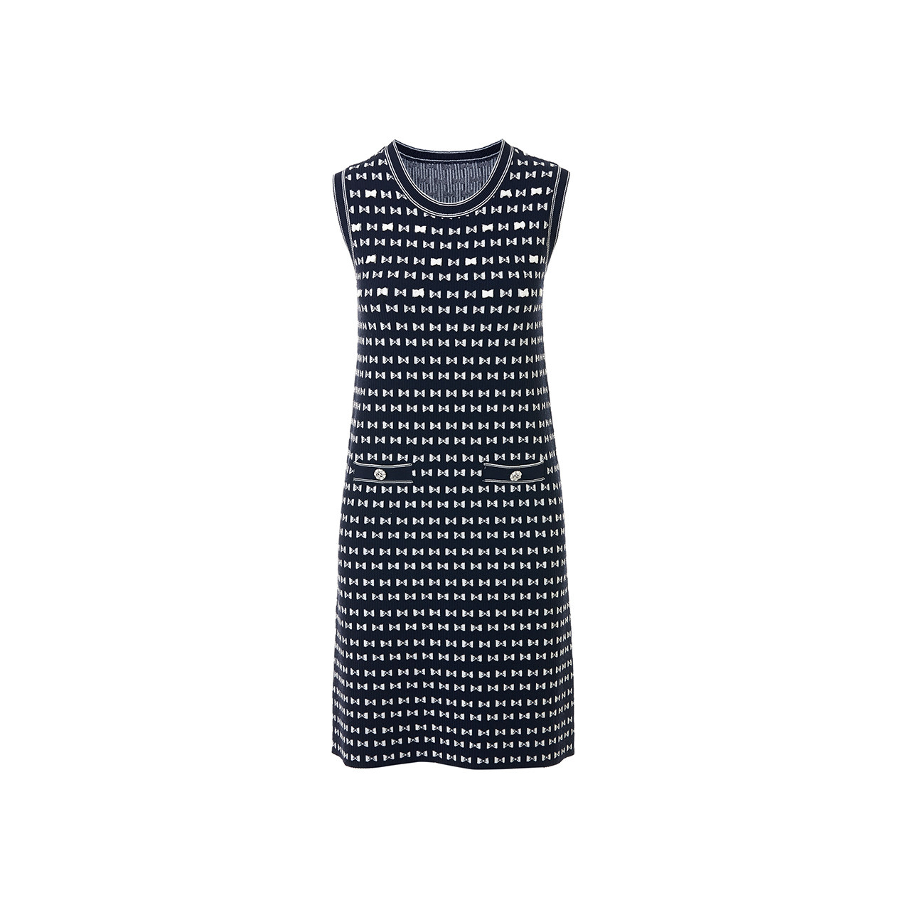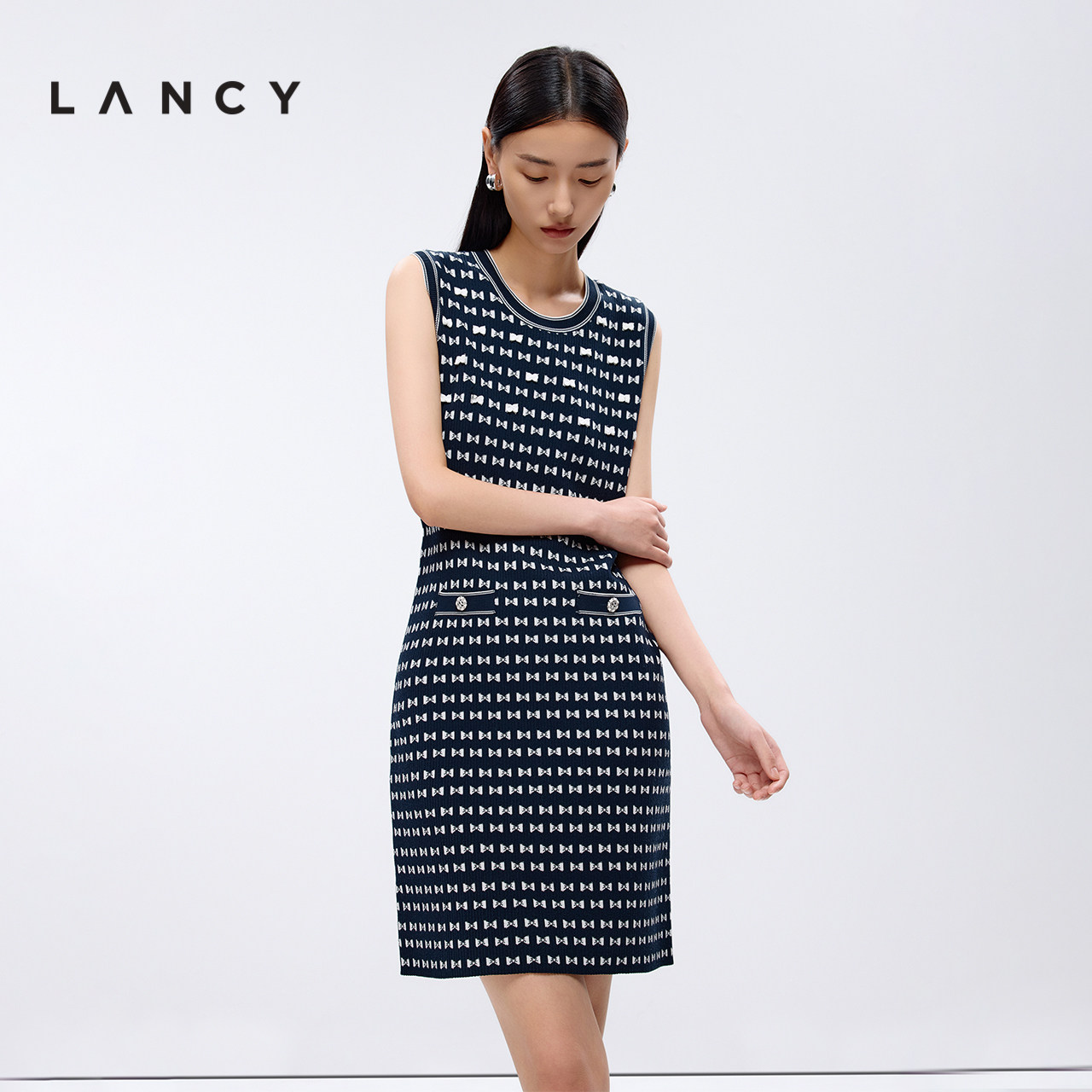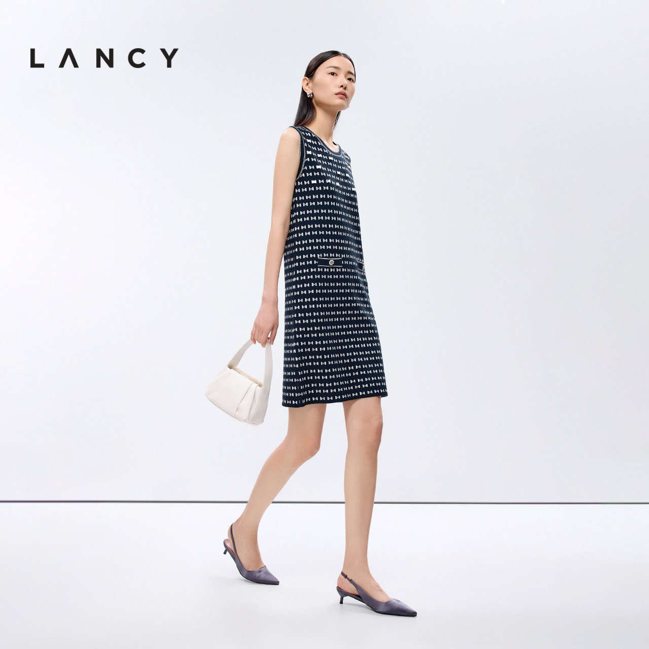 LANCY/朗姿2025春新款无袖满印小香风短款连衣裙圆领高级感裙子女