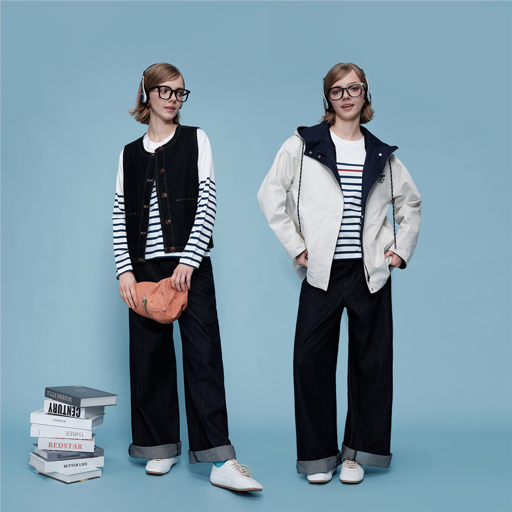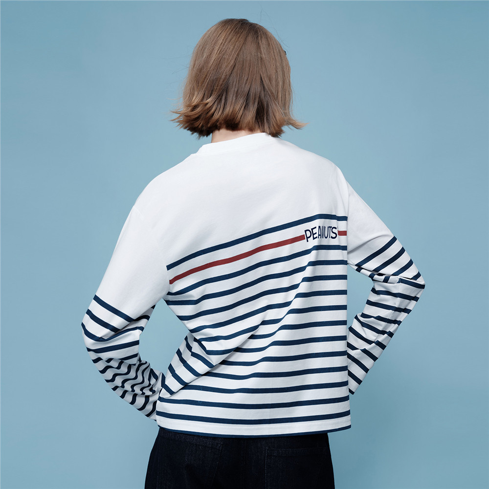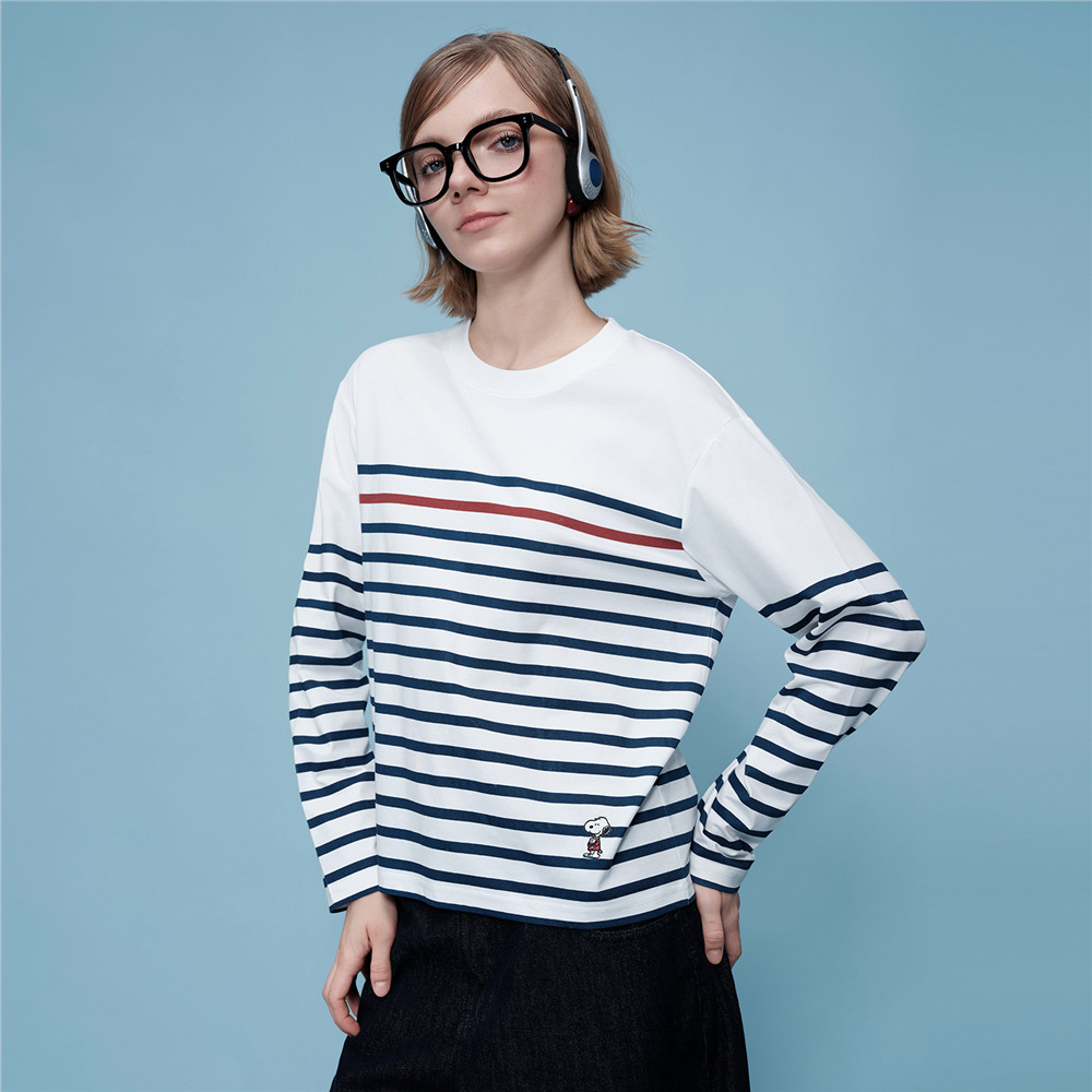 [史努比联名]佐丹奴2026年春季海魂衫印绣条纹长袖T恤女18325924