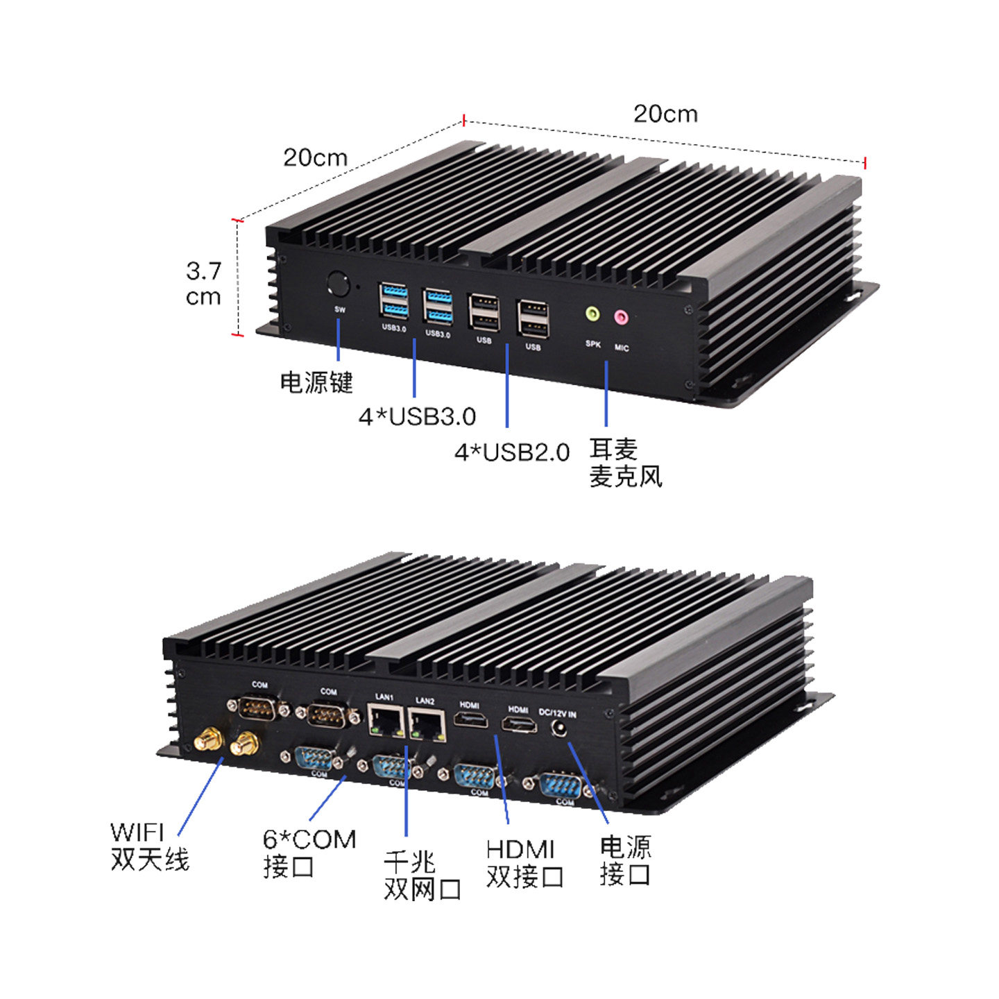 占美GK4000工控电脑全封闭无风扇6串工业防尘i3i5i7嵌入式主机IPC
