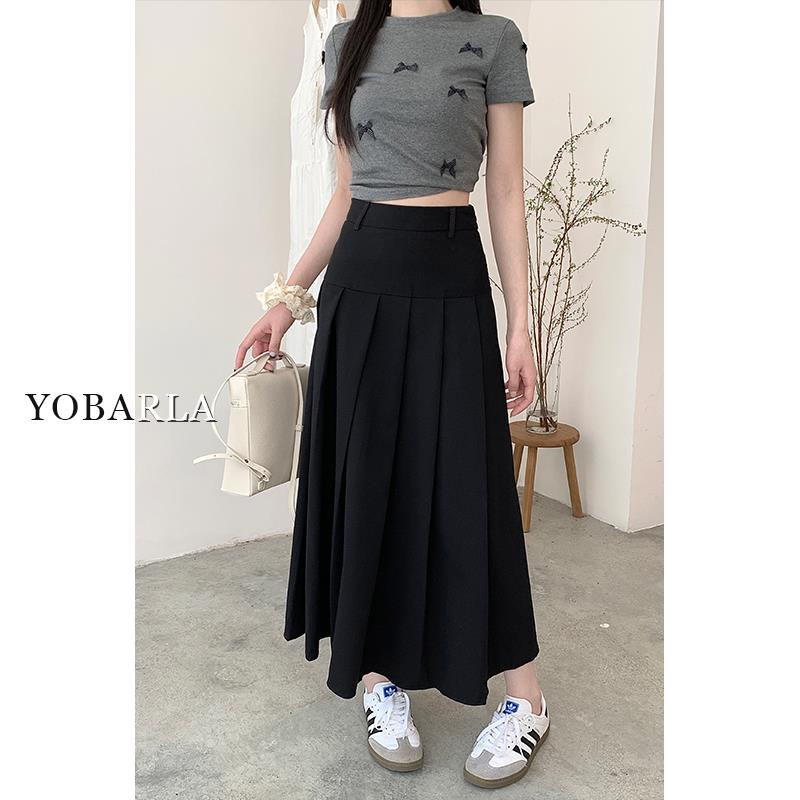 黑色西装百褶半身裙女高腰春秋大码胖mm遮肚子显瘦中长款a字裙子