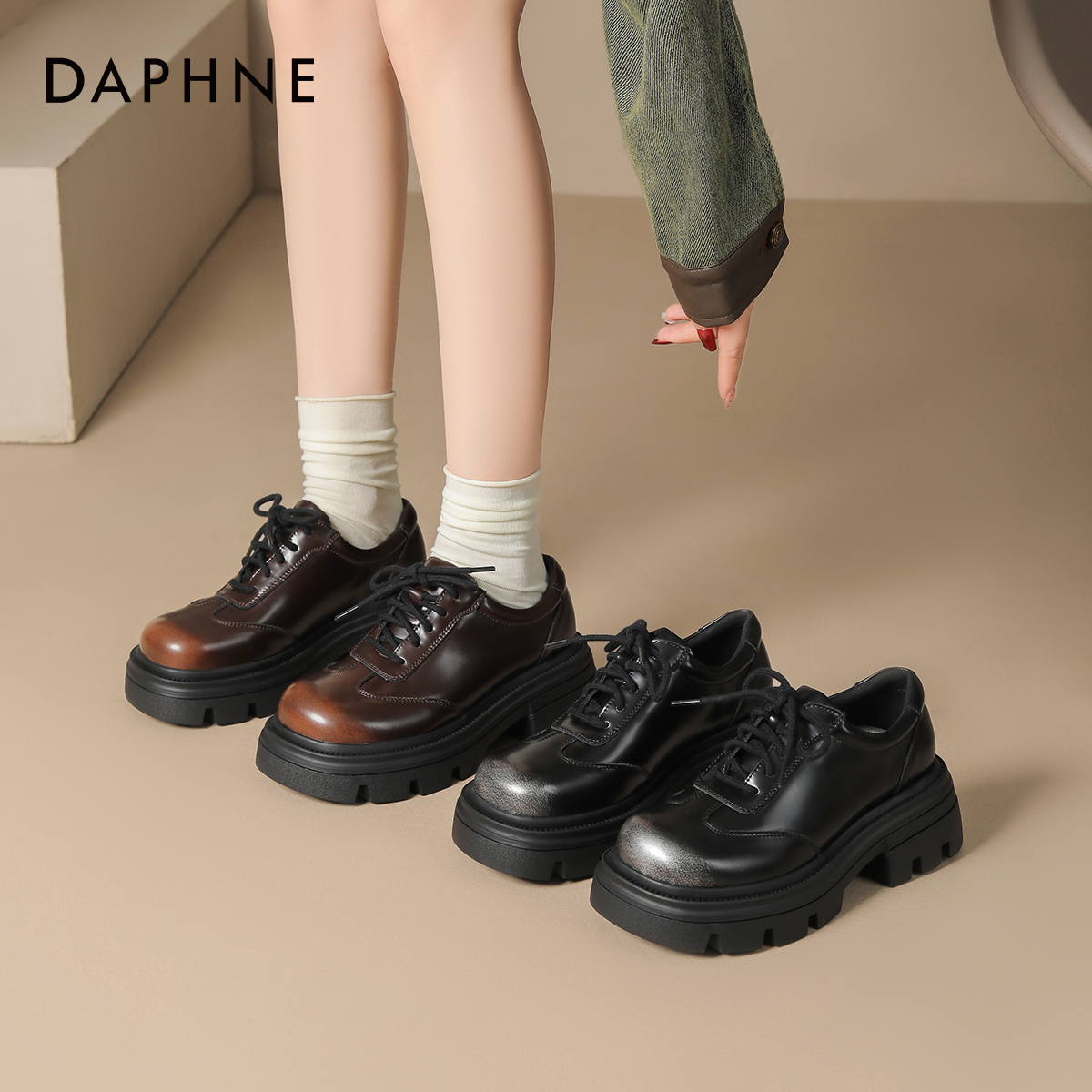 达芙妮厚底乐福鞋女2025新款秋季女鞋棕色单鞋英伦风小皮鞋秋冬款