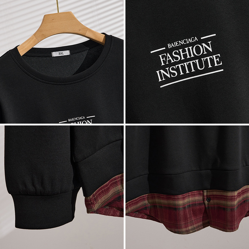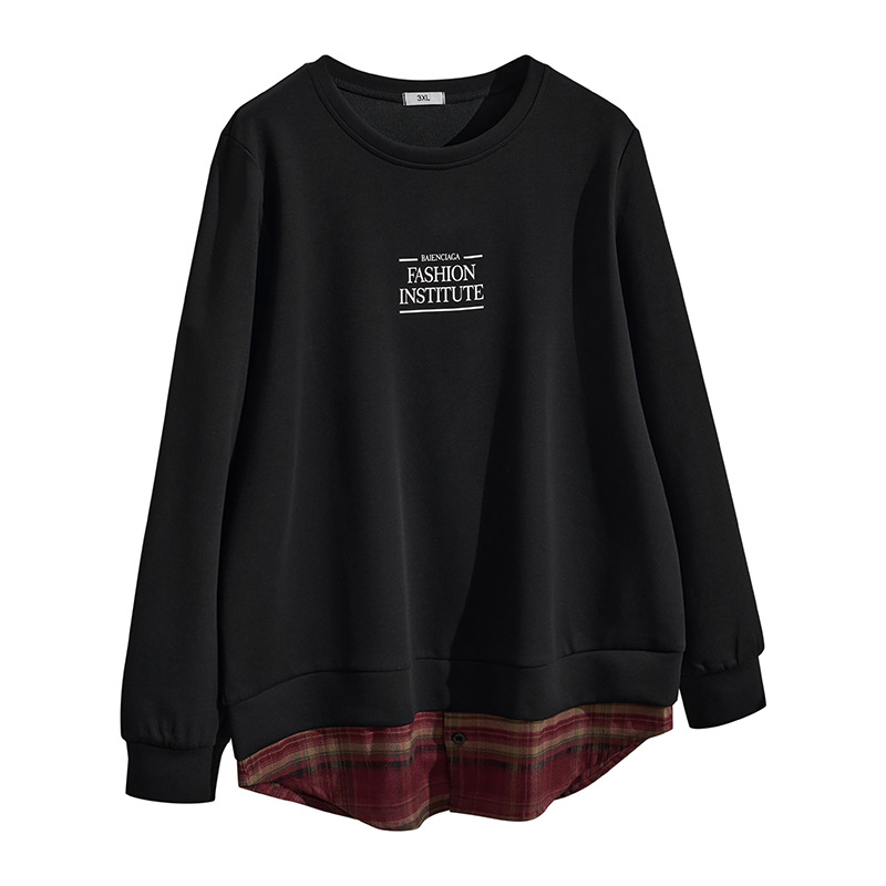 300斤特大码假两件显瘦上衣女秋遮肚子200斤胖mm加肥宽松套头卫衣