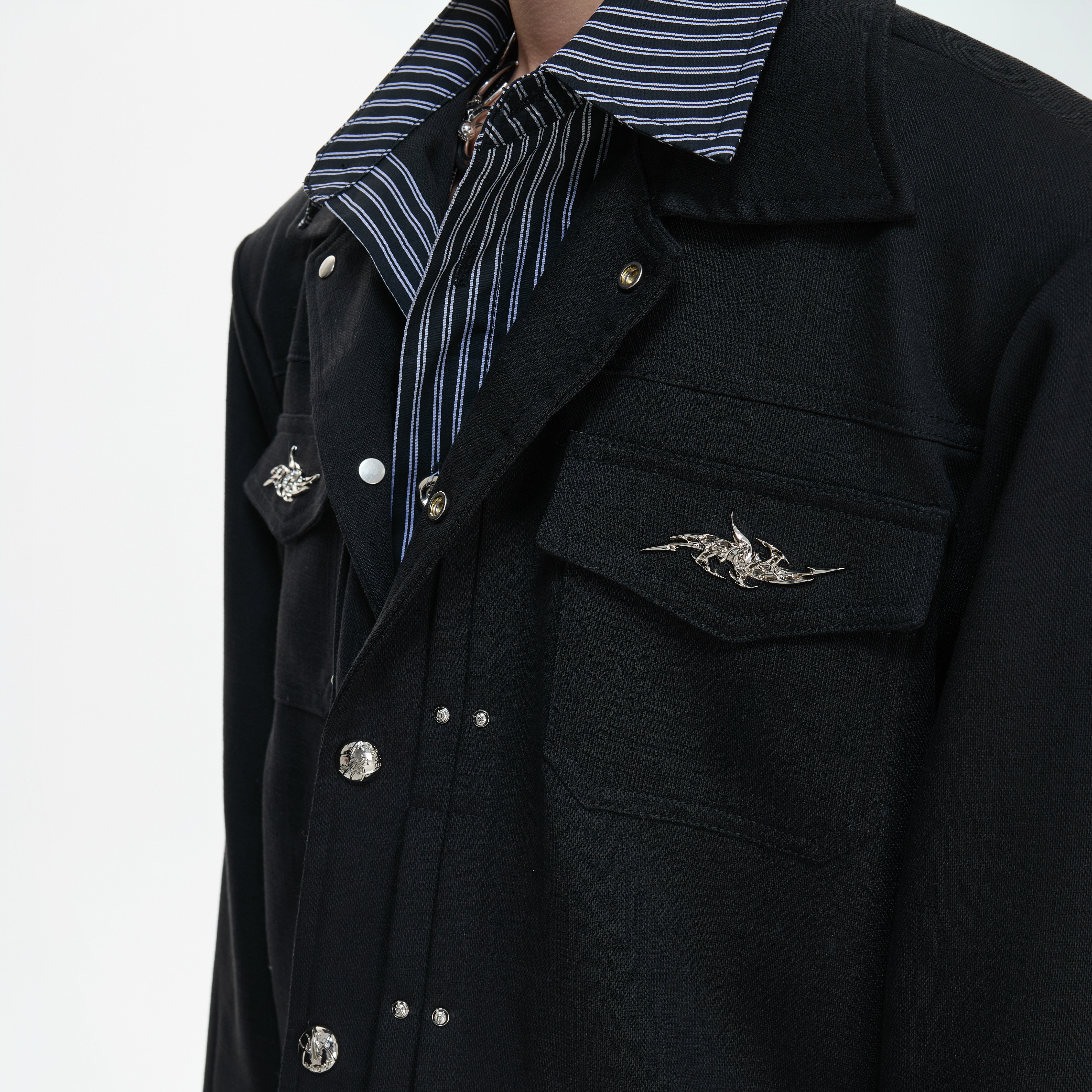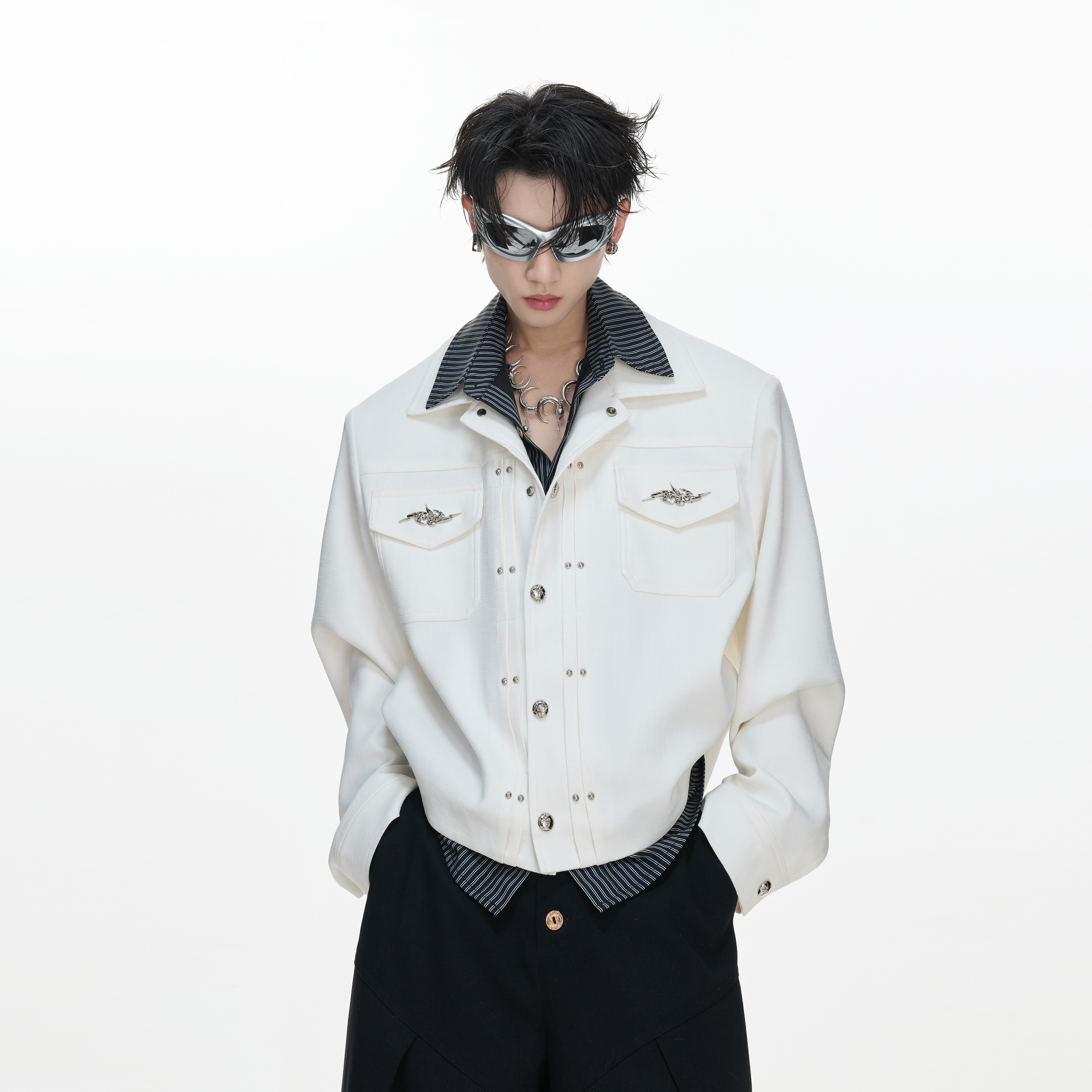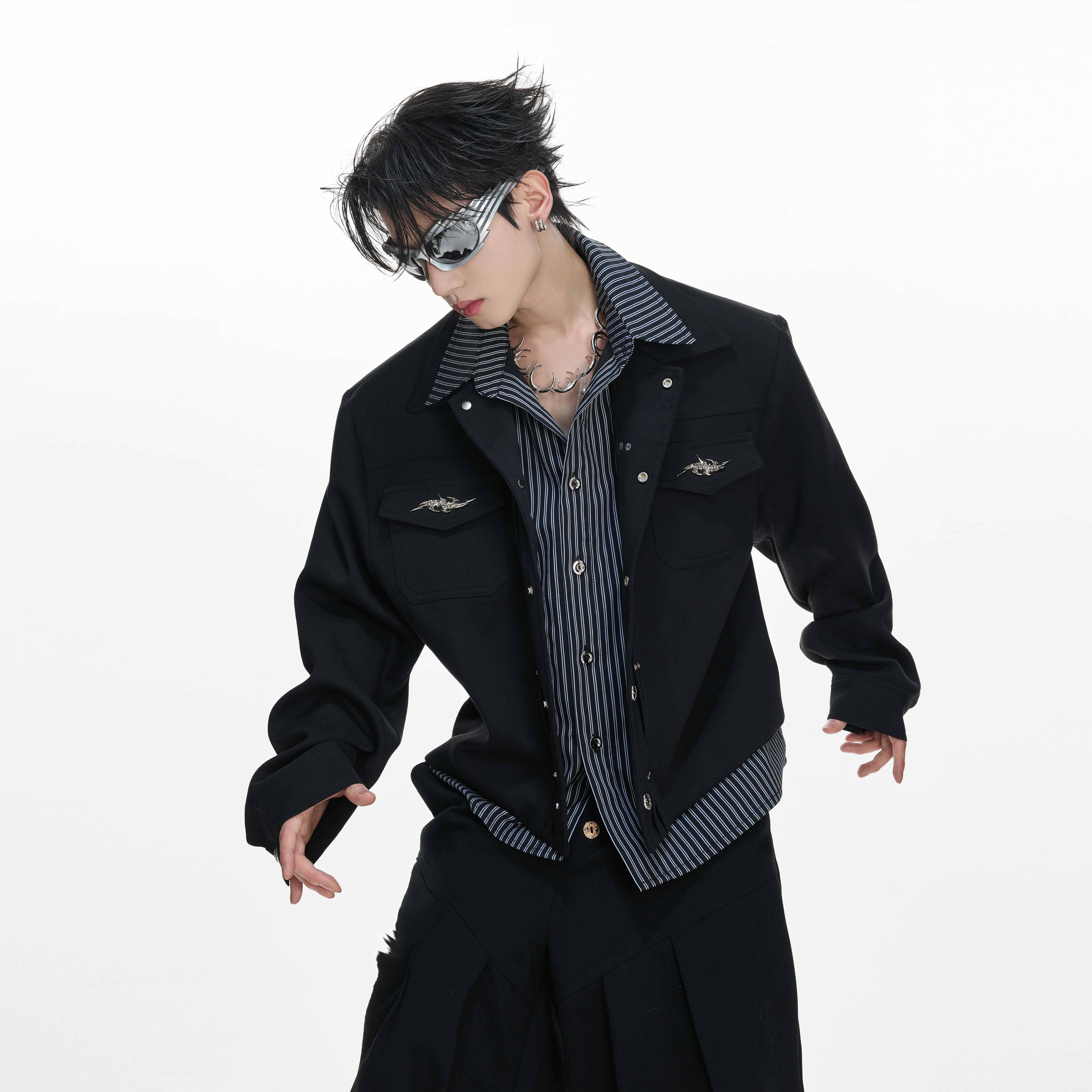 ArguE CulturE 云帆*条纹衬衫假两件设计短宽夹克金属纽扣外套春