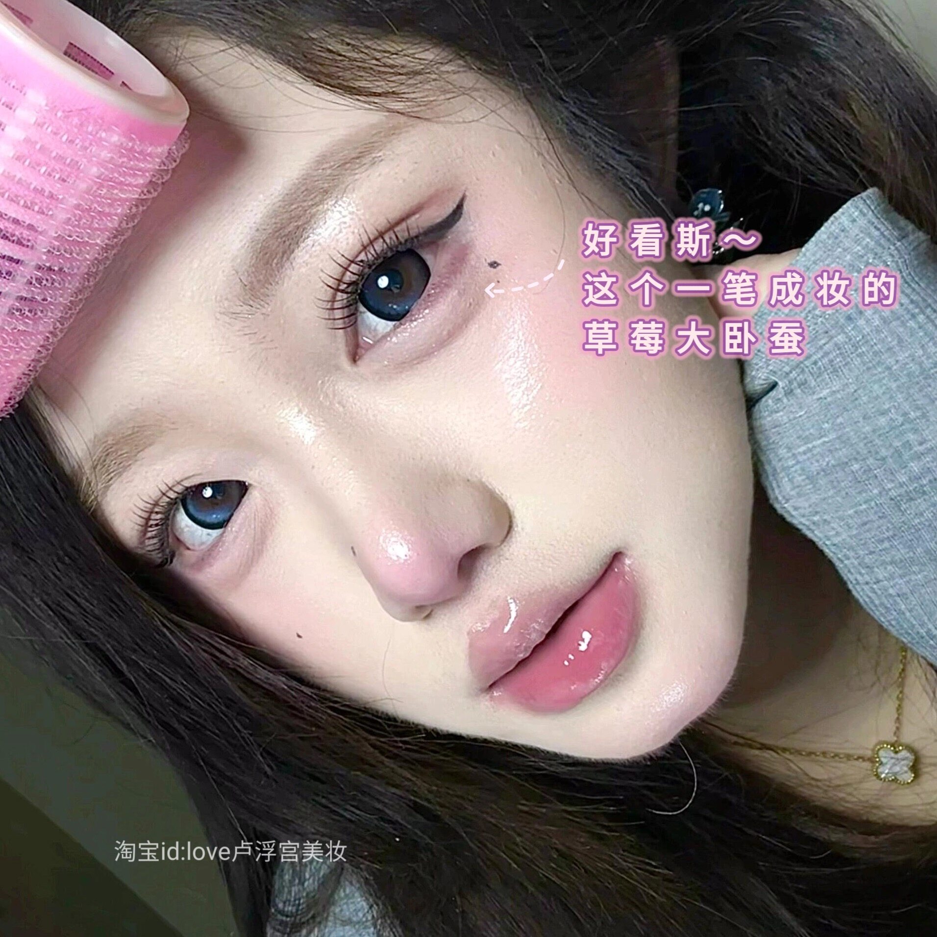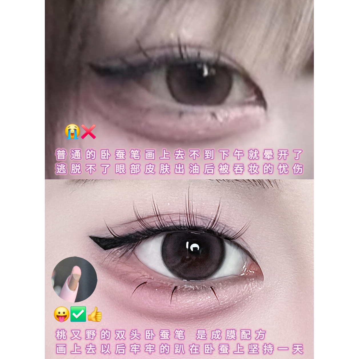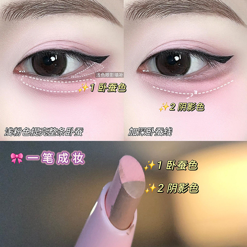 韩蕾妆草莓大卧蚕!桃又野双头卧蚕笔粉嫩一笔成妆阴影肉条无辜感