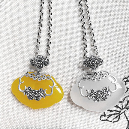 天然玉髓如意祥云长命锁项链女925纯银吊坠锁骨链老银匠手工ph7