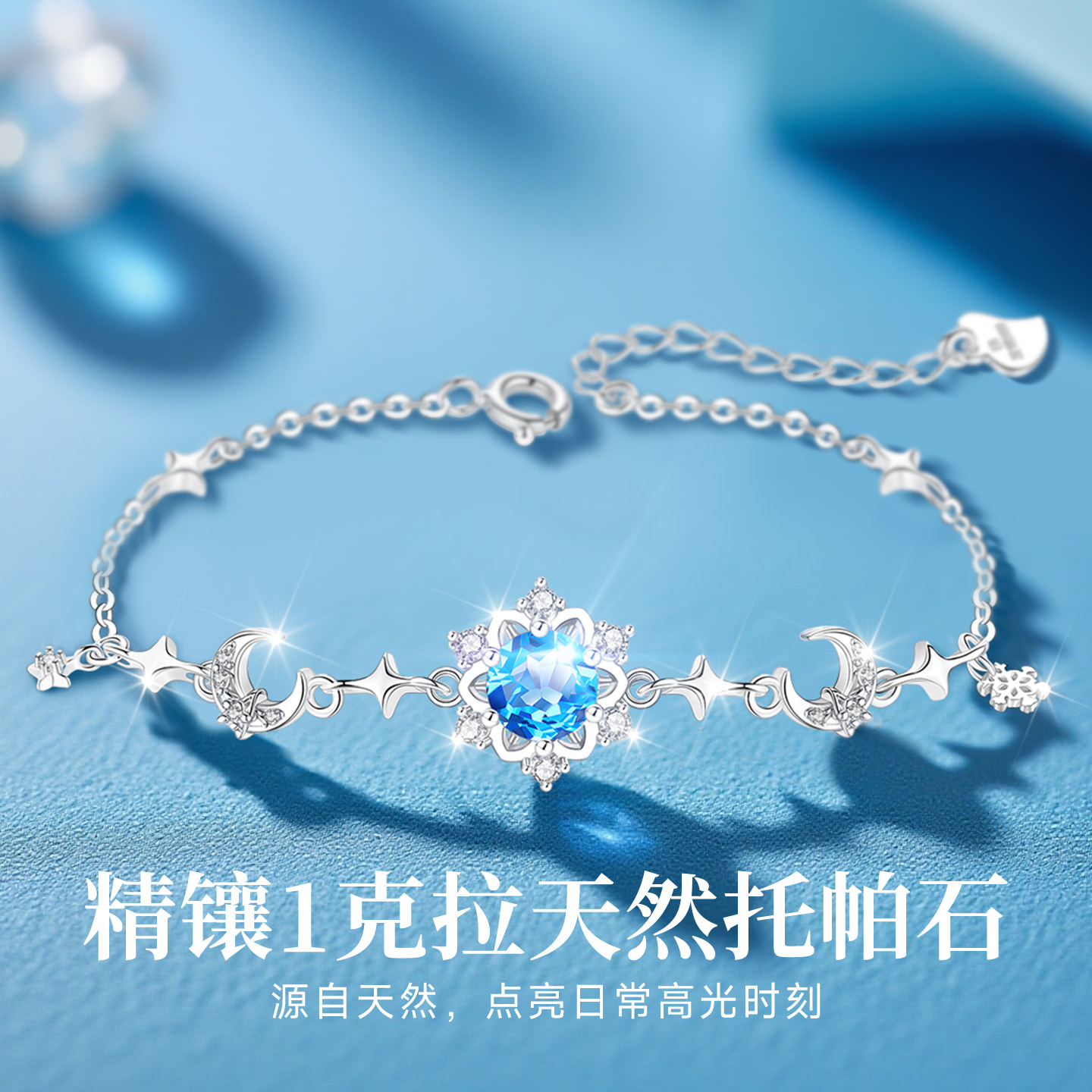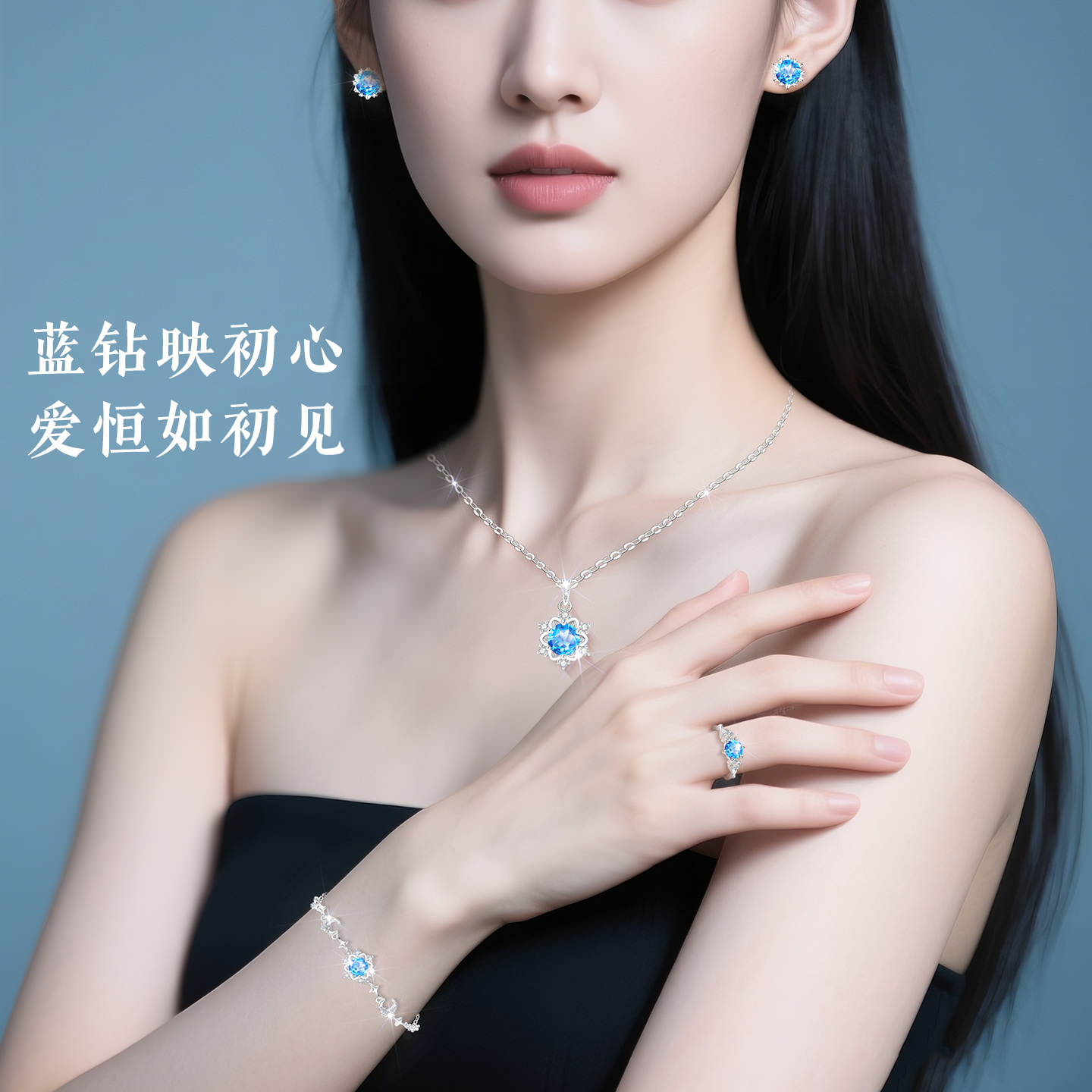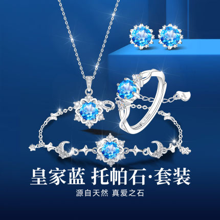 999纯银天然托帕石银项链女款女首饰套装四件套女士生日礼物女生