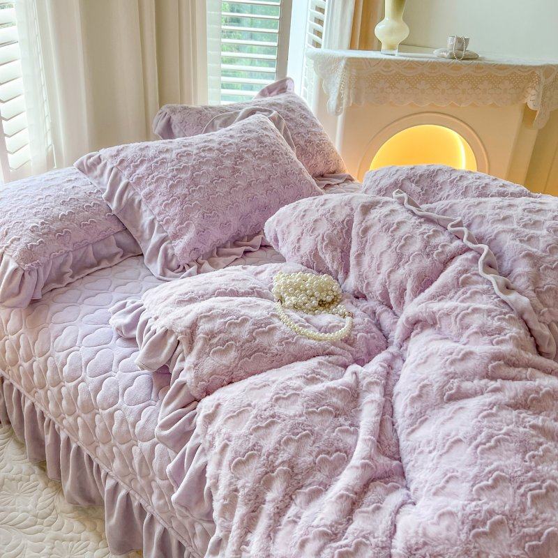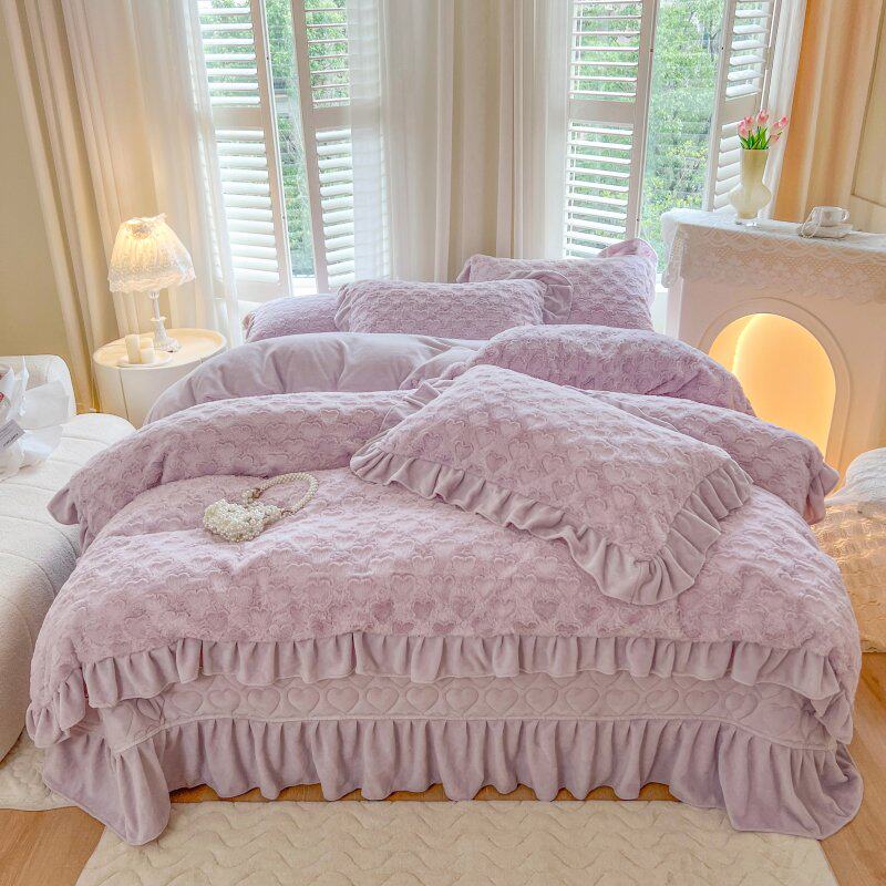 婴儿牛奶绒四件套冬季加厚夹棉床盖床裙宝宝珊瑚绒床上被套高级感