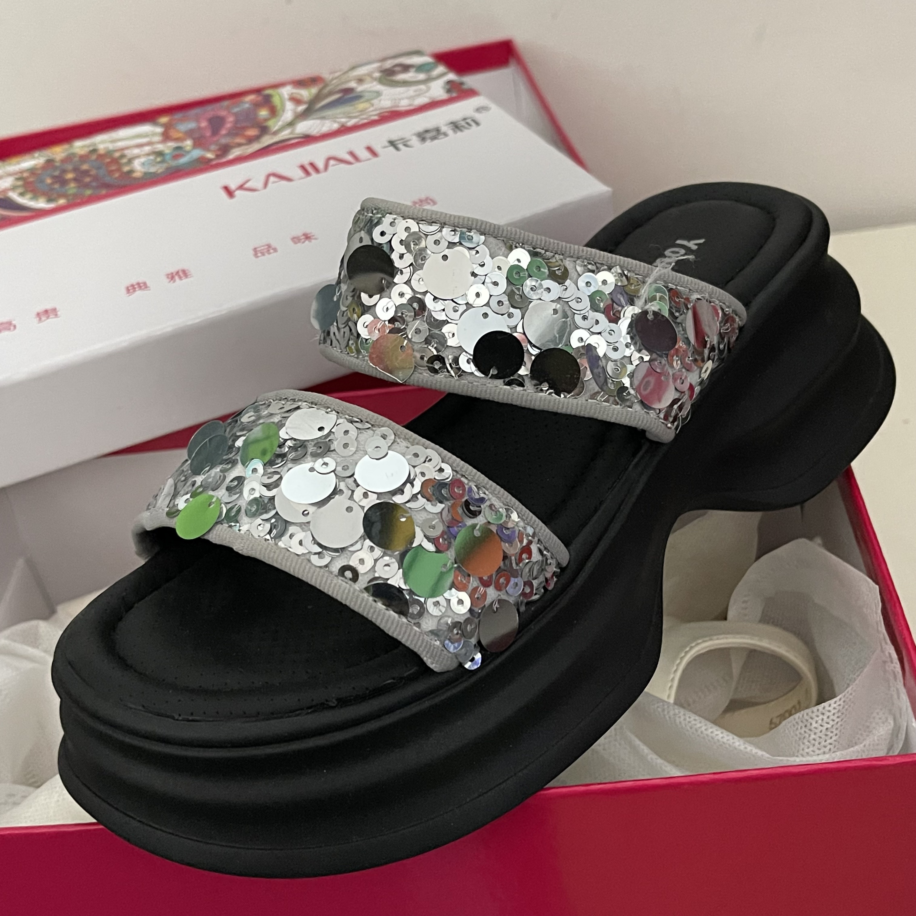 专柜正品真皮厚底凉鞋时尚外穿2025夏季百搭增高休闲松糕罗马女鞋