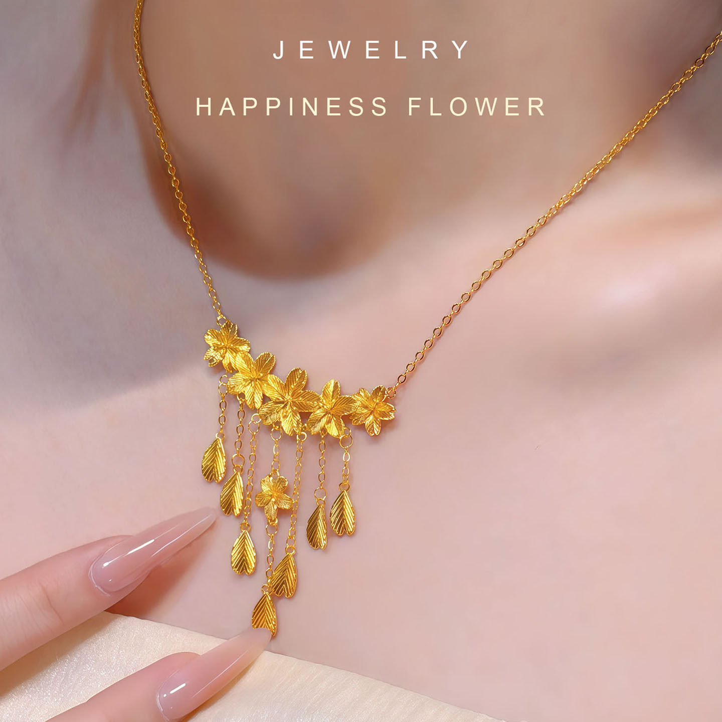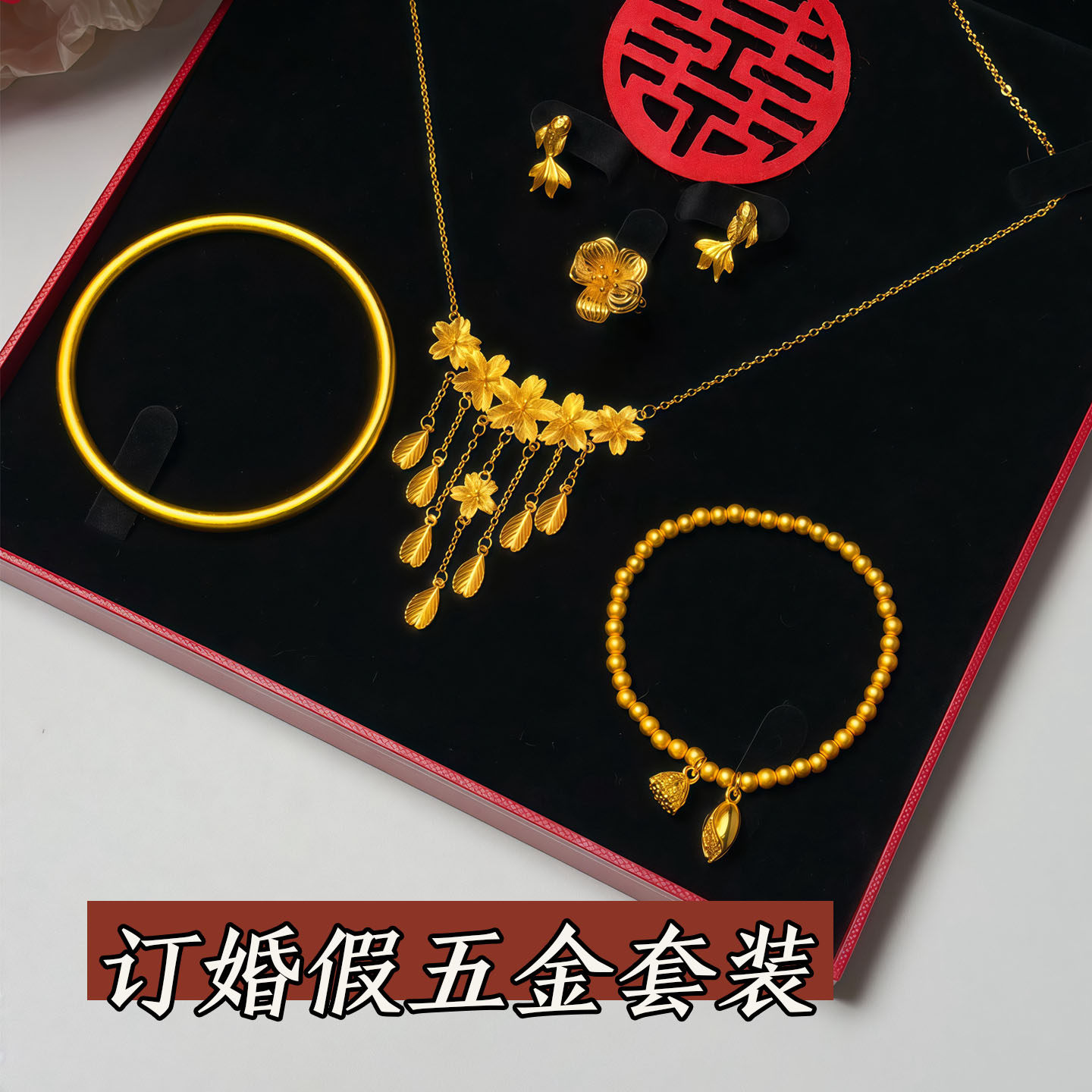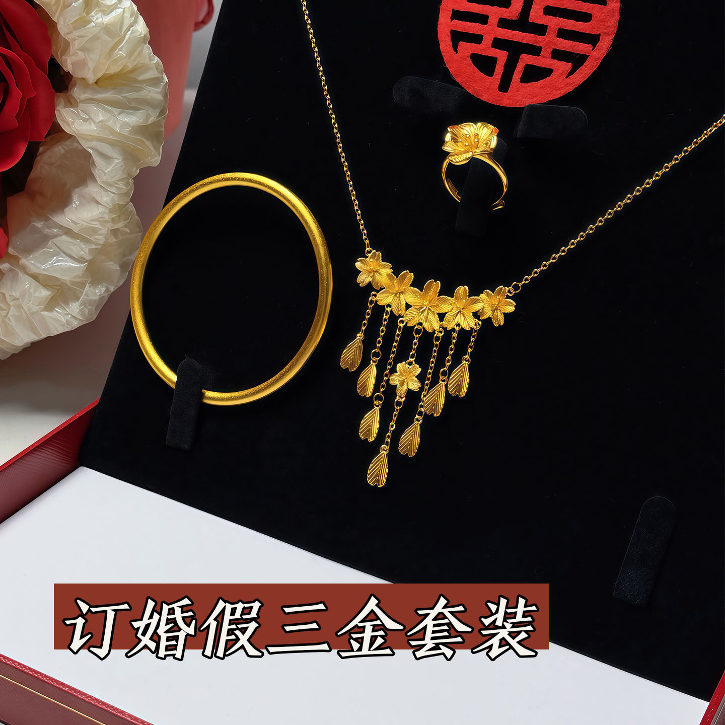 「格桑缔缘」仿真黄金项链新中式订婚结婚假三金五金婚嫁首饰套装