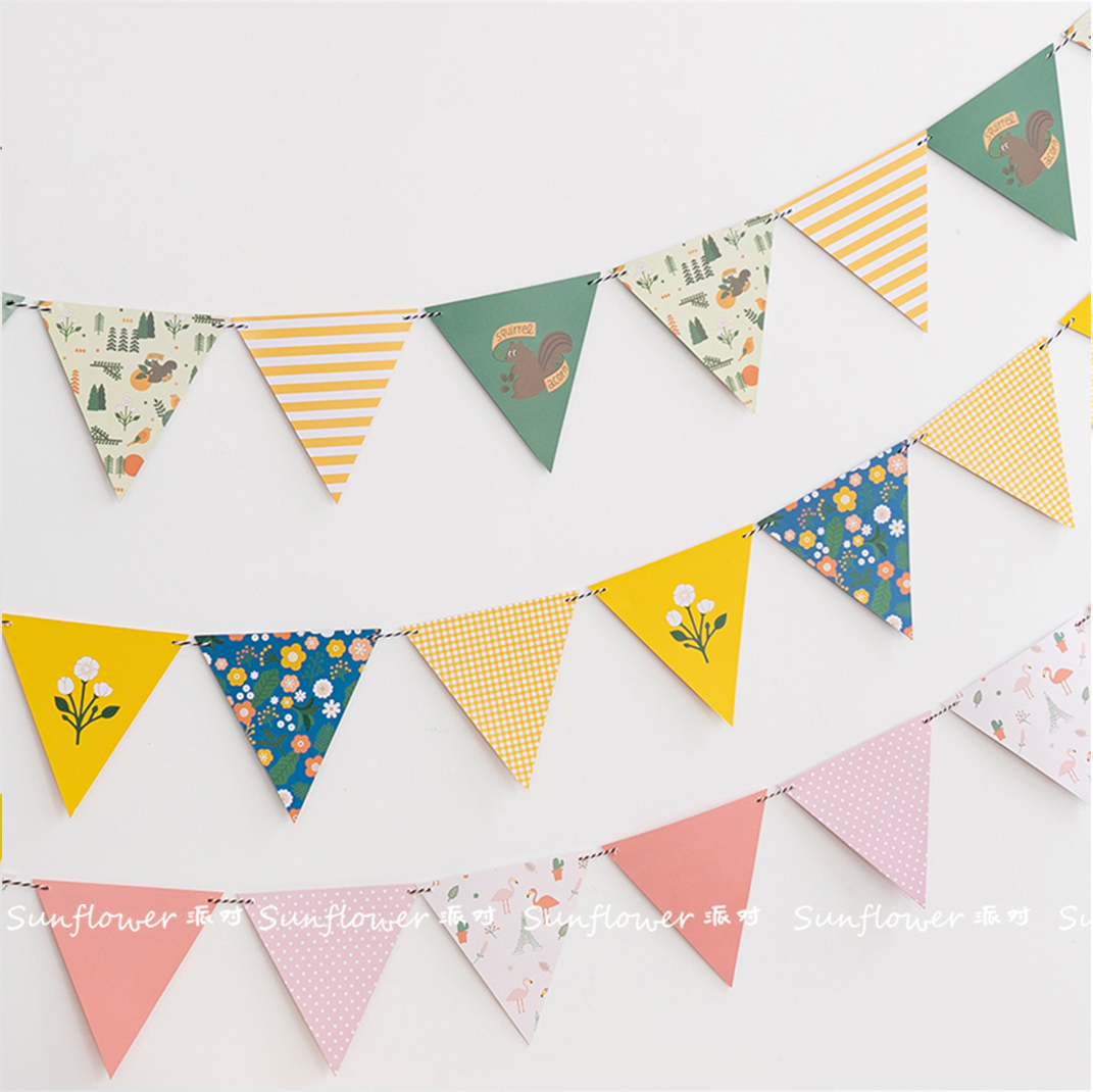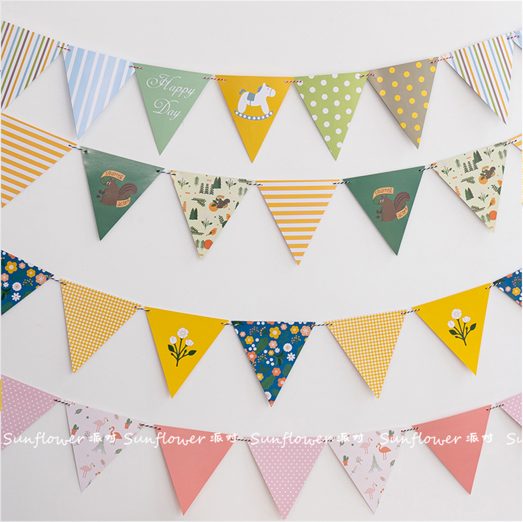 三角彩旗露营帐篷装饰挂旗儿童生日布置火烈鸟房间布置纸质拉旗
