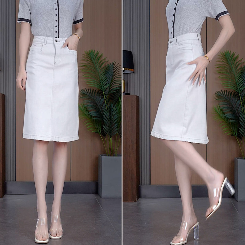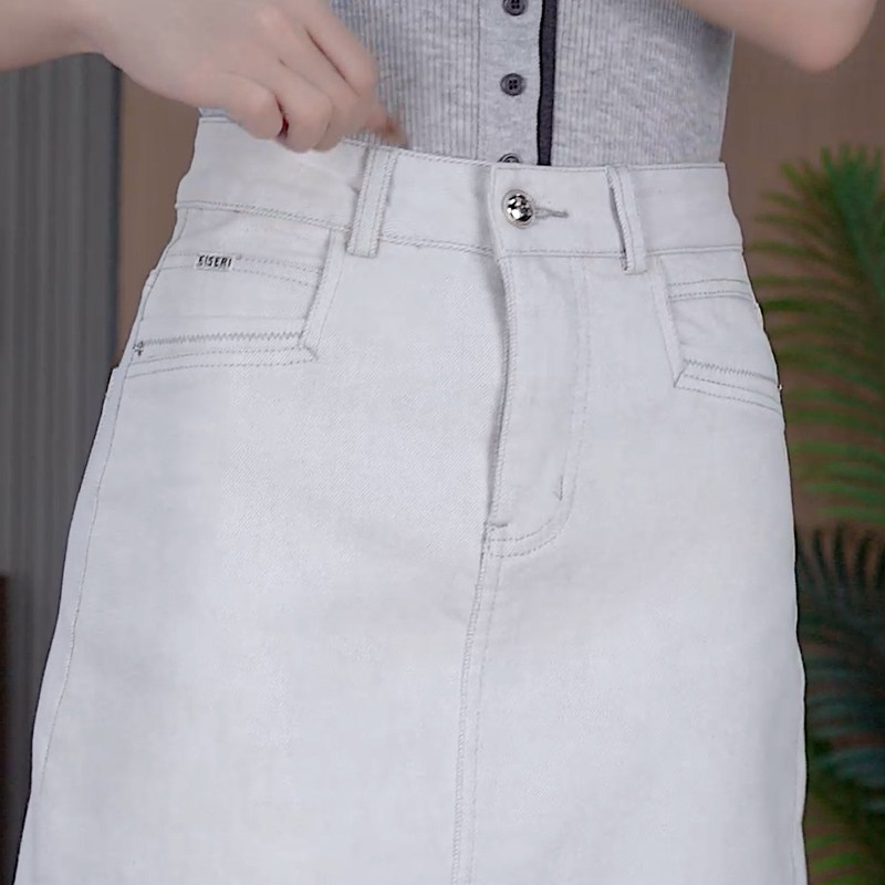 洗水棉高腰一步裙女秋冬后开叉中长牛仔裙宽松显瘦百搭时尚半身裙