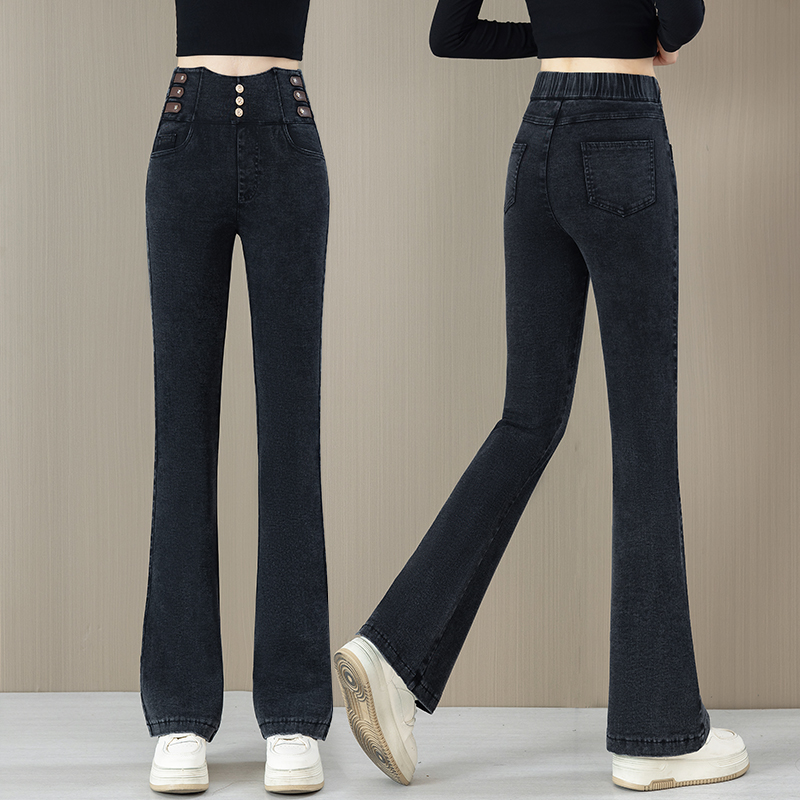黑色喇叭牛仔裤女春秋小个子高腰显瘦2025新款爆款松紧腰微喇裤子