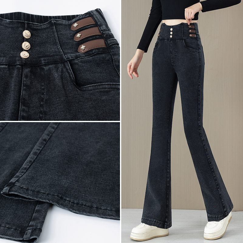 黑色喇叭牛仔裤女春秋小个子高腰