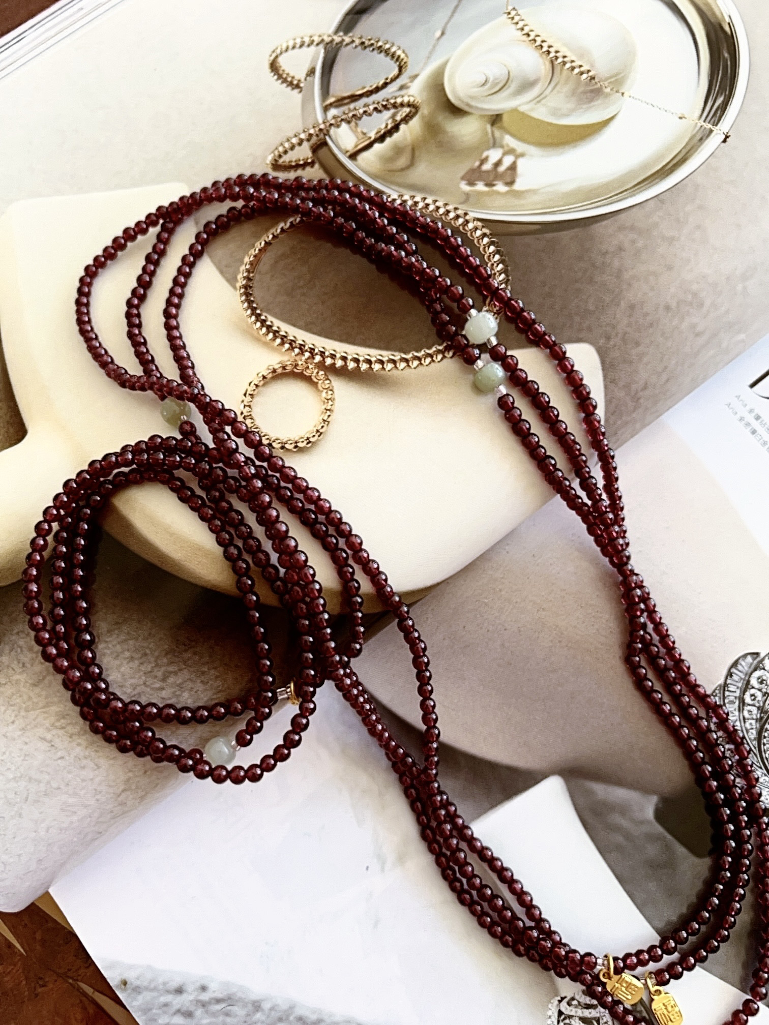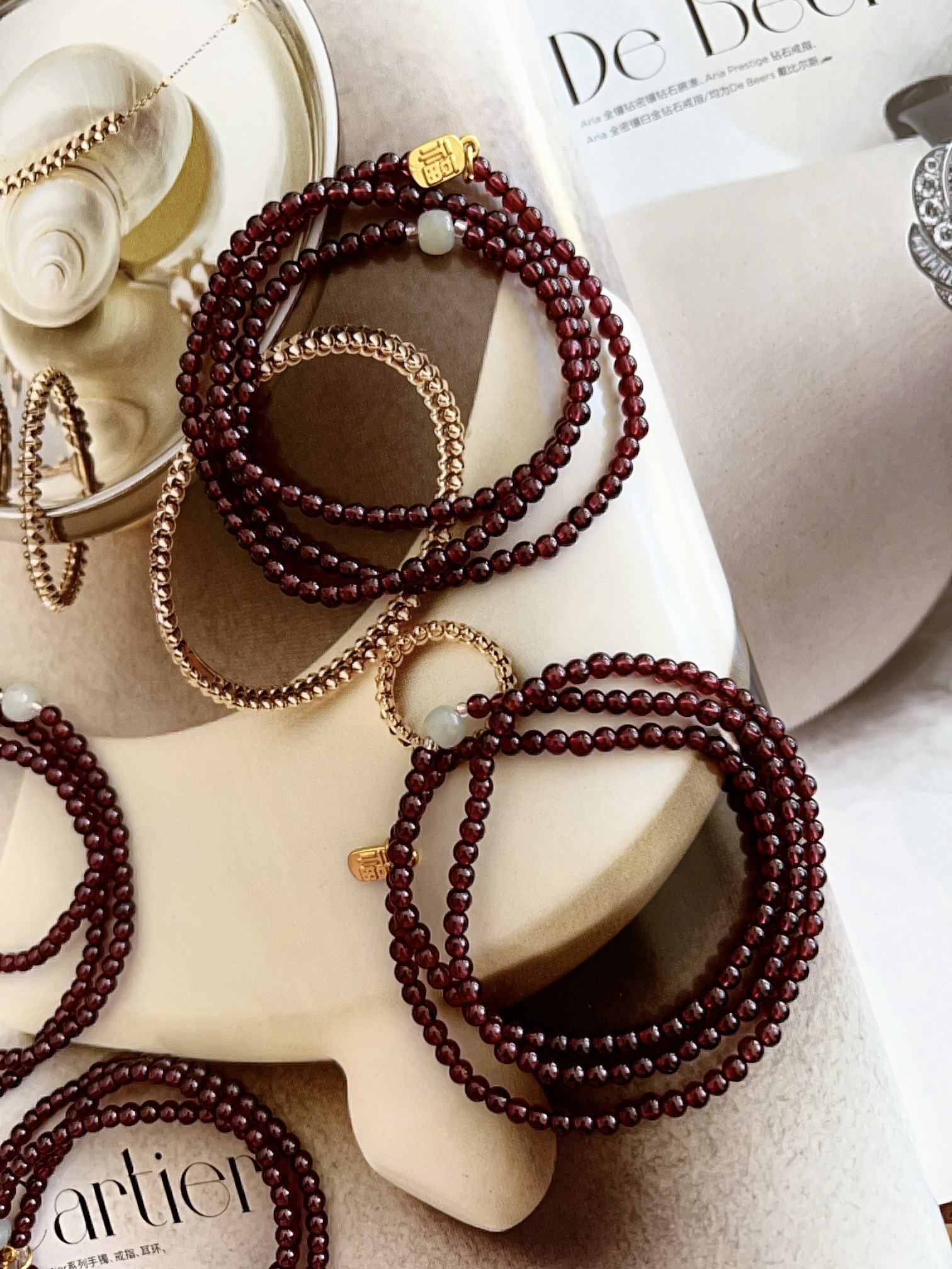 2025年新中式红石榴石三圈手链女天然石手串