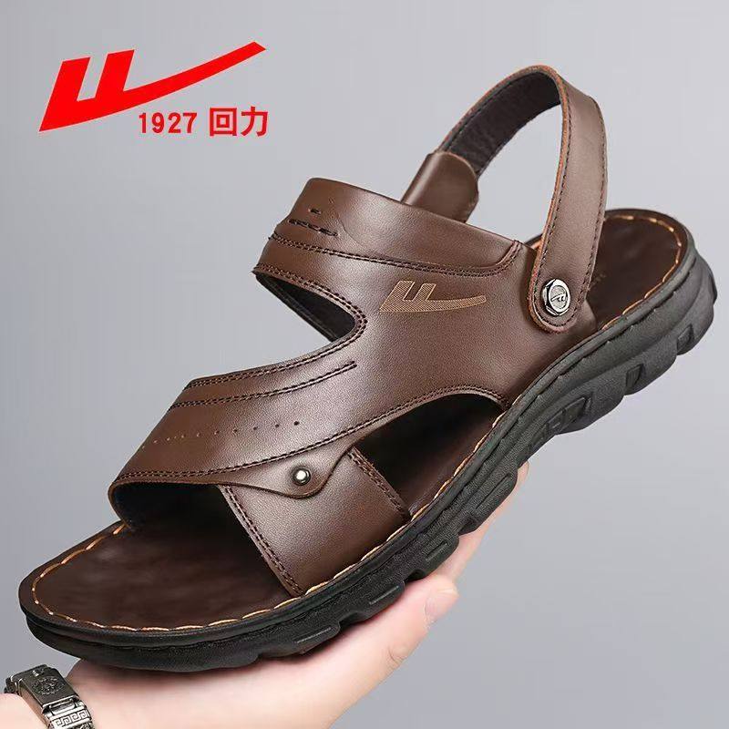 回力官方正品店男鞋新款头层牛皮凉鞋夏季皮凉鞋拖鞋休闲沙滩鞋子