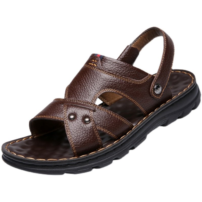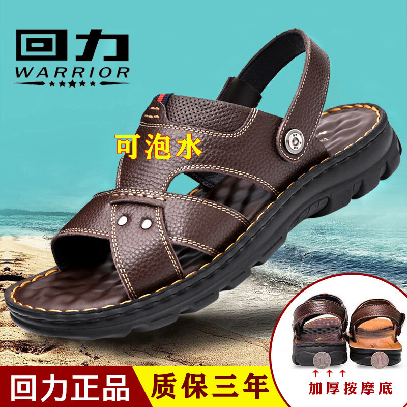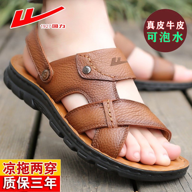 回力牛皮凉鞋夏季休闲透气沙滩鞋