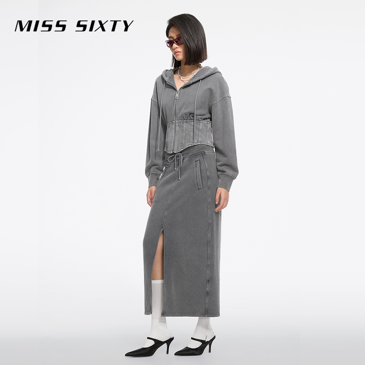 Miss Sixty25春秋款半身裙松紧腰前开衩卫衣裙A字长裙休闲风