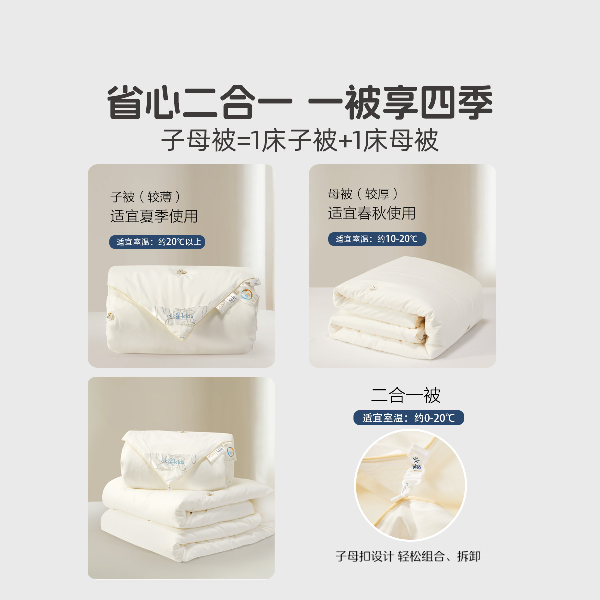水星家纺儿童桑蚕丝二合一被