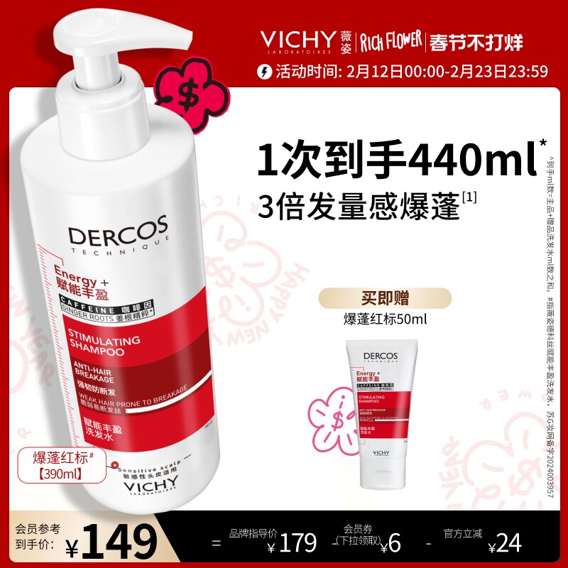 [马柏全同款]薇姿爆蓬红标洗发水有钱花礼盒咖啡因生姜蓬松洗头膏