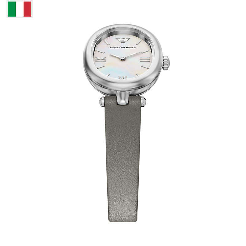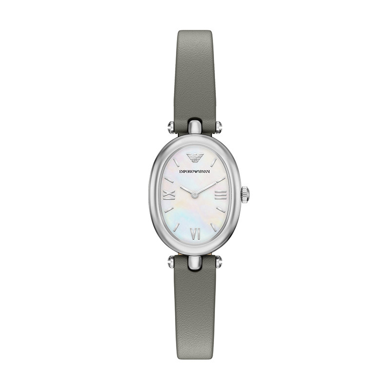 【自营】Armani阿玛尼白月光手表女大象灰皮革椭圆贝母AR11779
