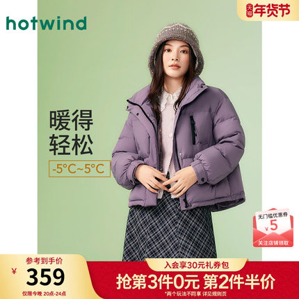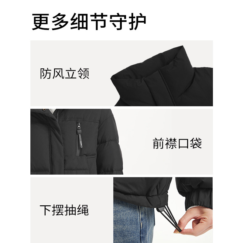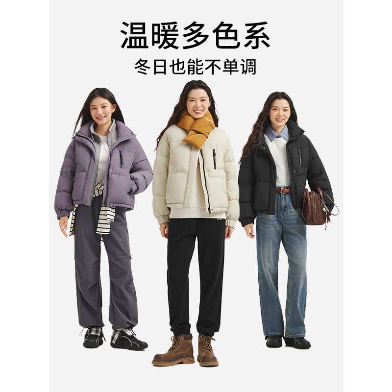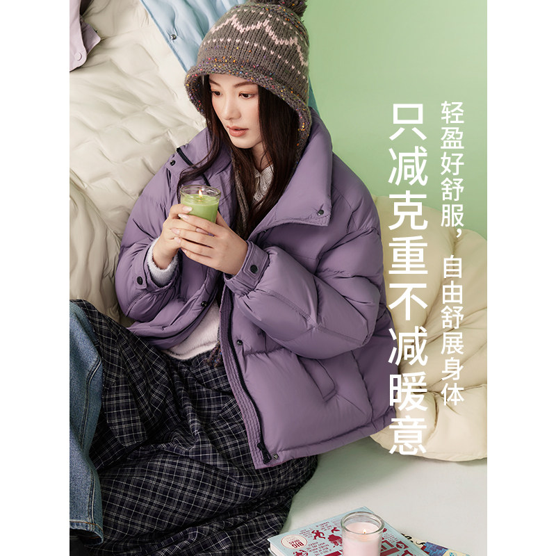 热风女士羽绒服2025年冬季新款立领短款羽绒服宽松面包羽绒服