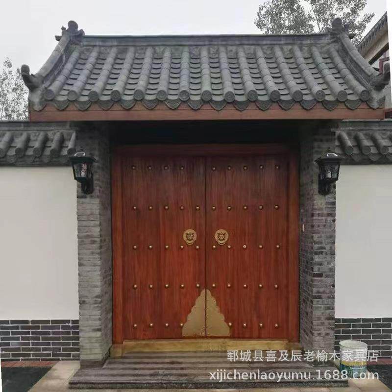 老榆木大门双开门民俗酒店别墅实木门仿古中式大门实木门