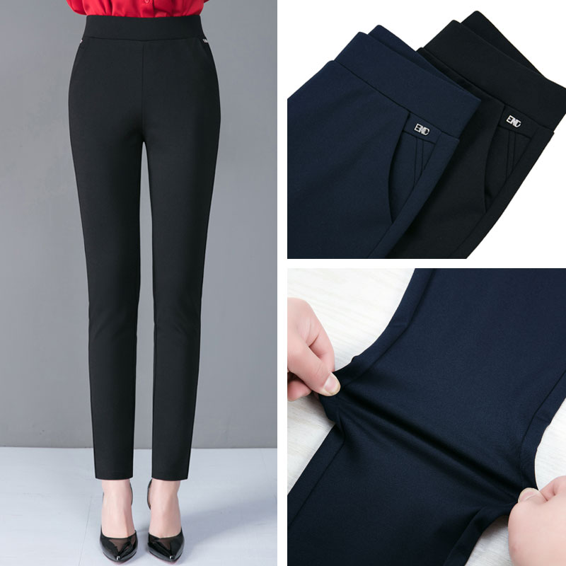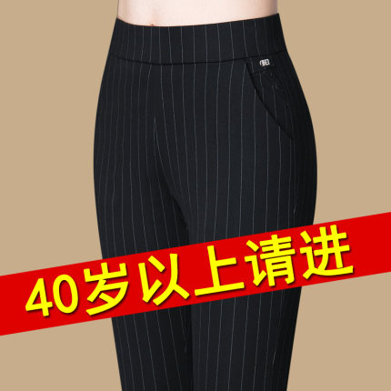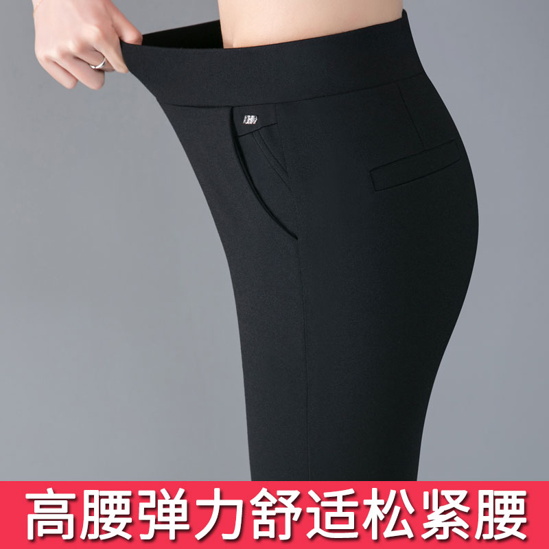 妈妈裤子春秋新款爆款外穿显瘦直筒休闲裤高腰弹力中老年九分女裤