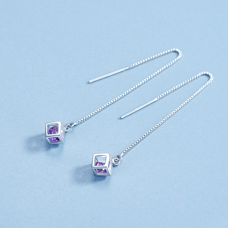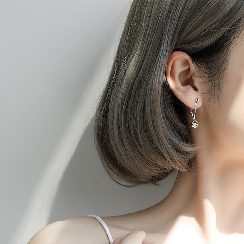 925纯银耳环耳线女冷淡风气质长款耳坠吊坠简约耳钉百搭免摘耳饰