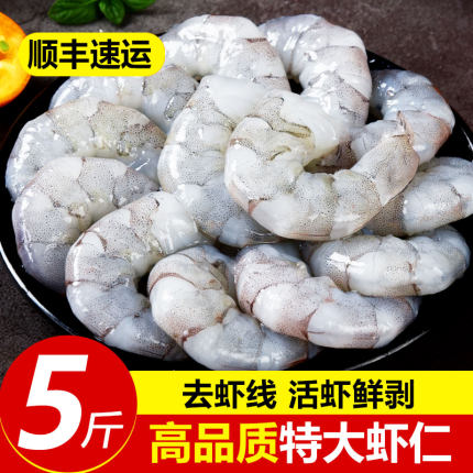 新鲜大虾仁鲜冻无冰特级大青虾仁冰冻即食低脂冷冻虾肉去虾线商用