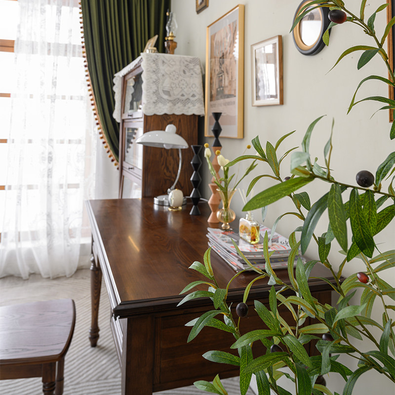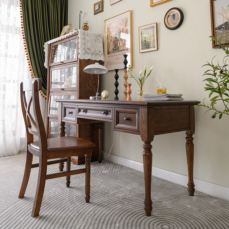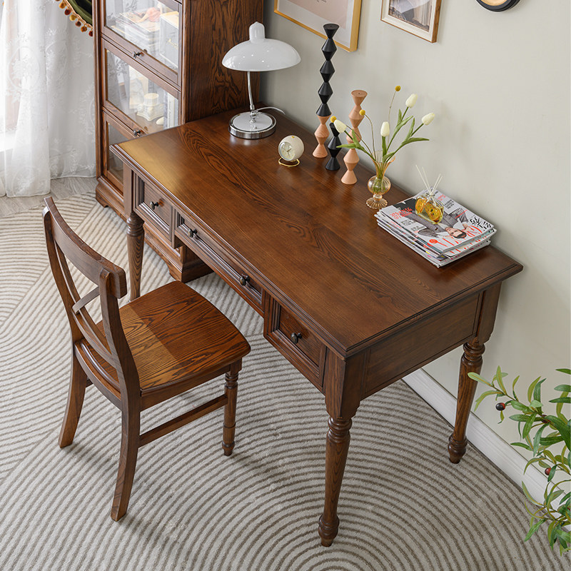 宜宝易森美式纯实木书桌全原木办公桌复古简约电脑桌家用写字台