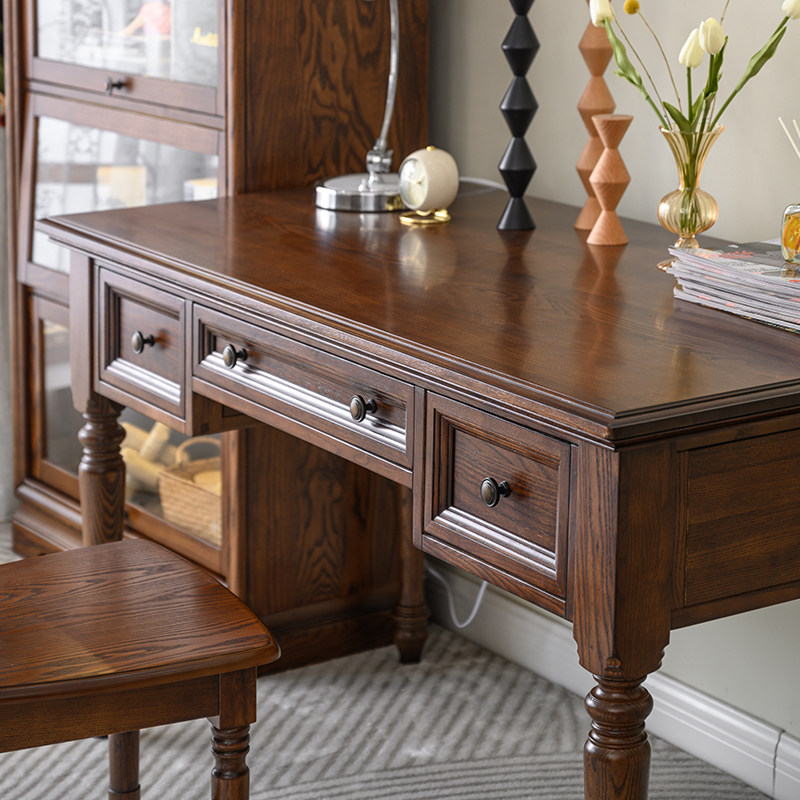 美式全实木书桌复古纯原木电脑桌