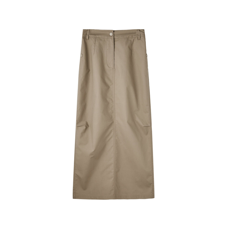 U/TI工装抽褶半身裙女百搭军绿色开衩直筒裙长裙尤缇2025夏季新款