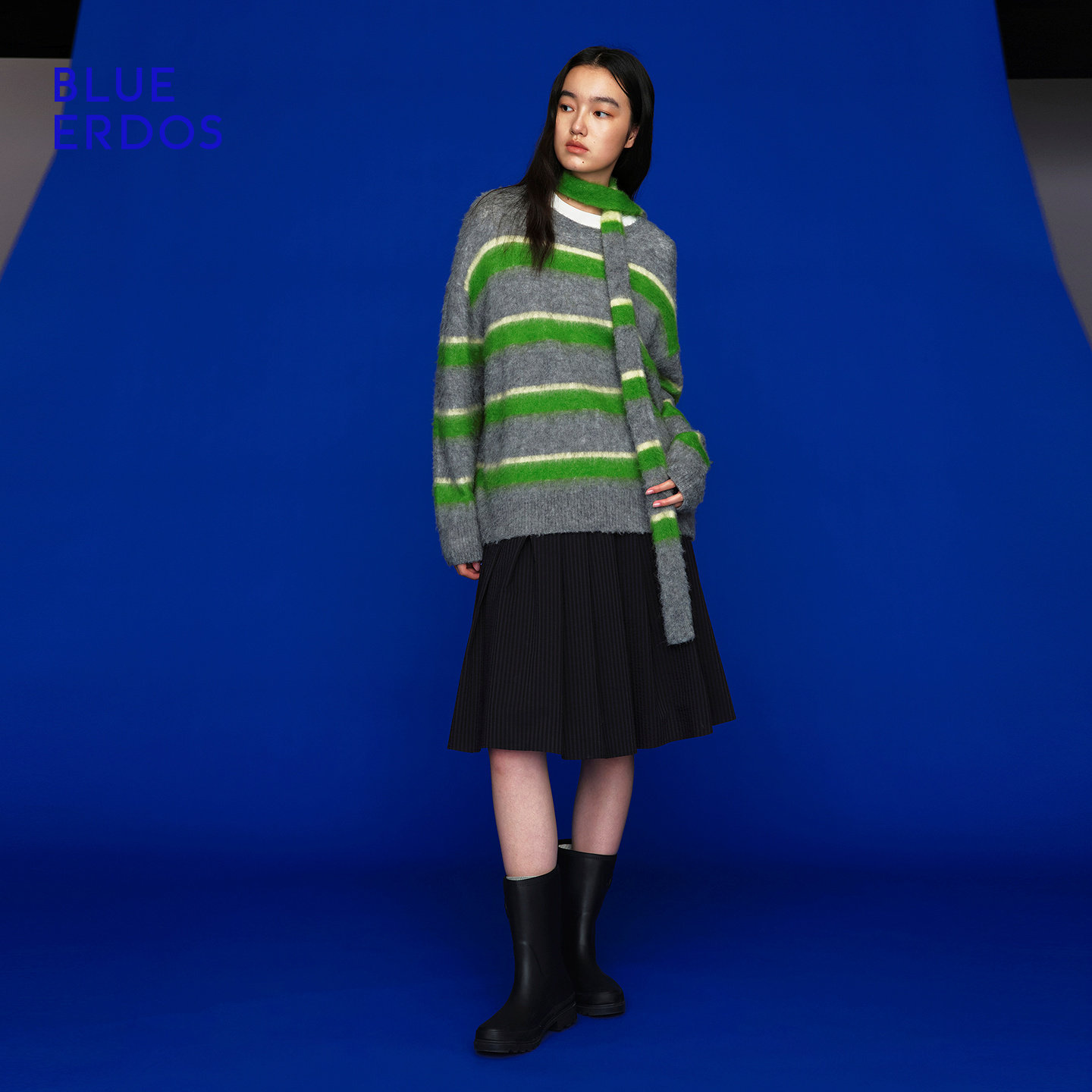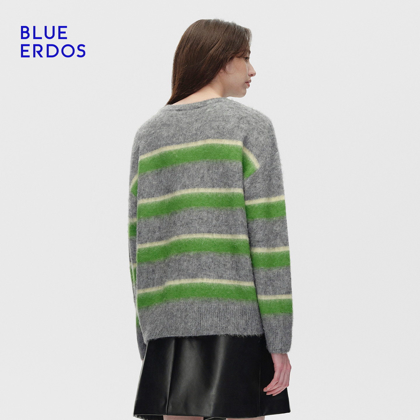 BLUE ERDOS 冬季新复古百搭拼色条纹羊驼毛混纺针织衫B256D0027