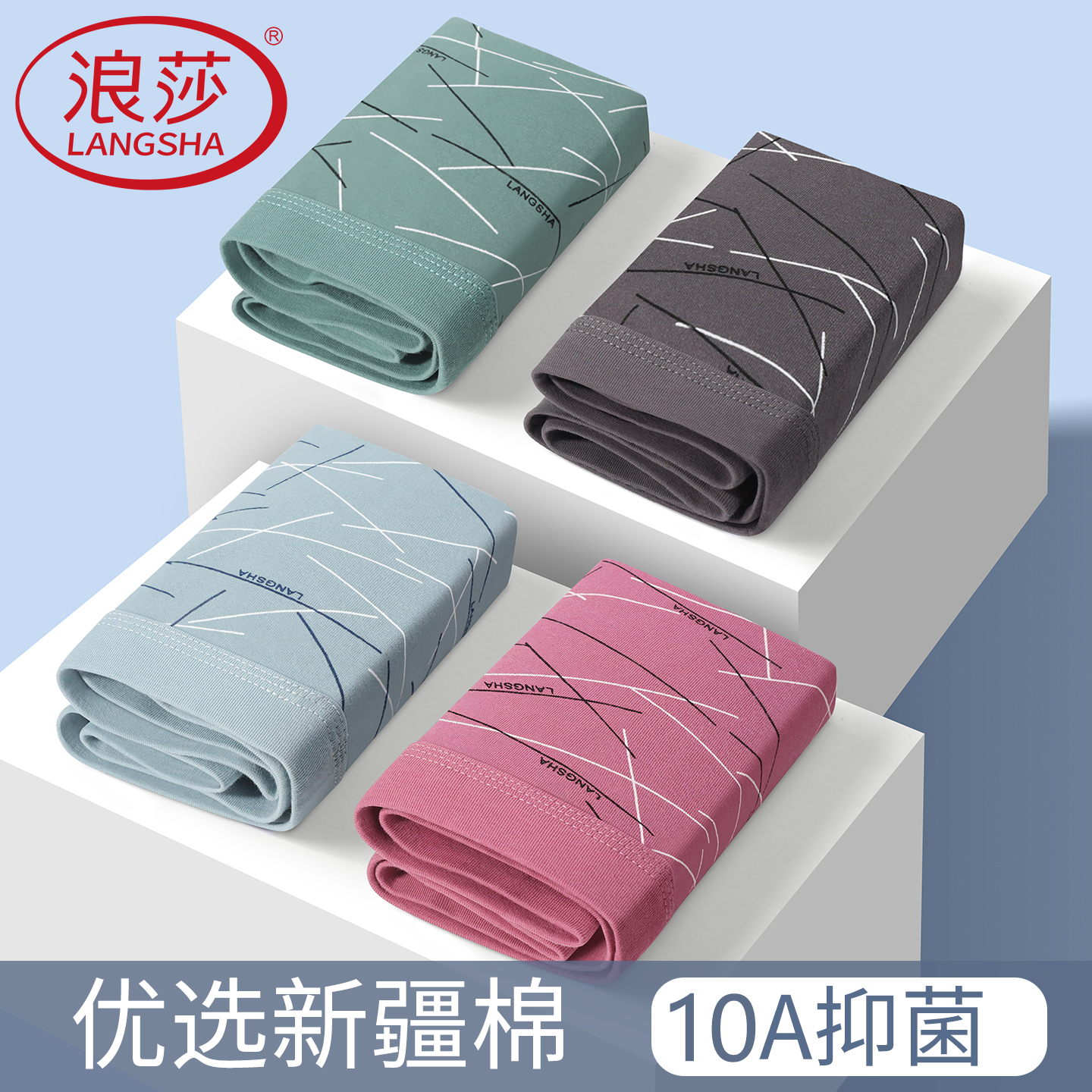 浪莎男士内裤男生纯棉10A抗菌裆平角裤衩宽松透气青年四角短裤头