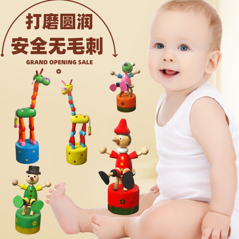 长颈鹿木偶摇摆站桶木制动物手指玩偶公仔玩具迷你可爱跳舞小丑人