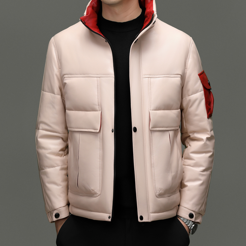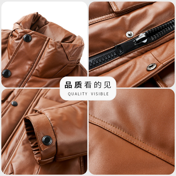 海宁高端头层绵羊皮男士2025冬季新款立领真皮皮衣羽绒服短款外套