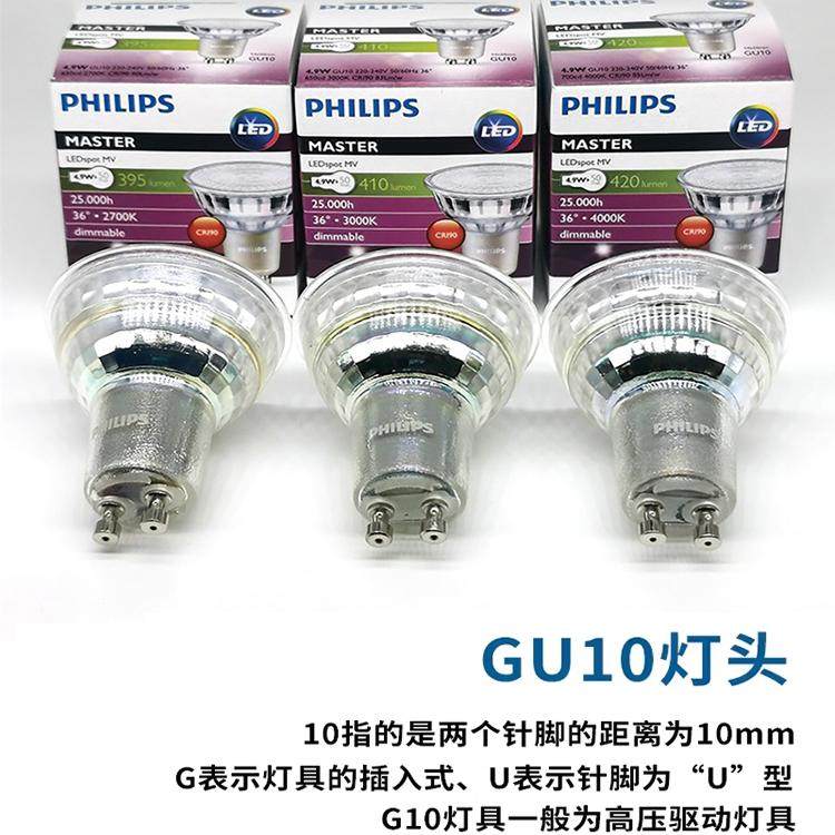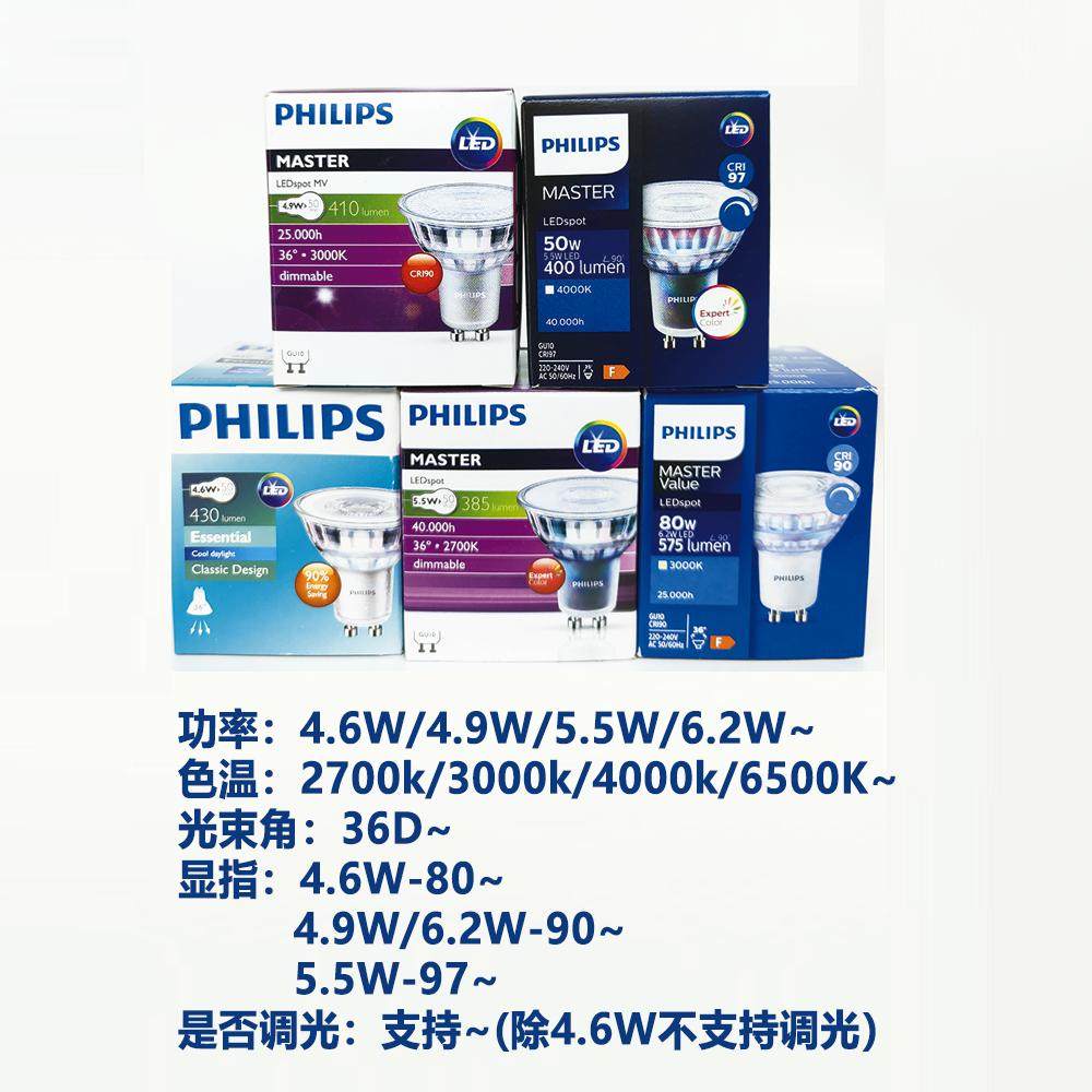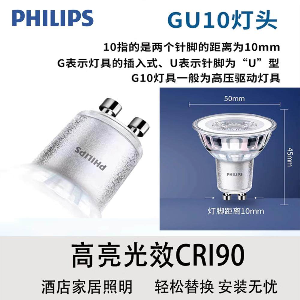 飞利浦GU10灯杯LED射灯小灯泡台灯卡口220V插脚水晶灯灯泡白黄光