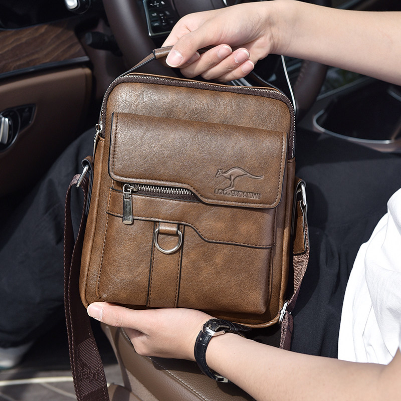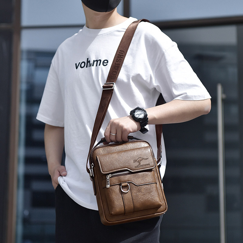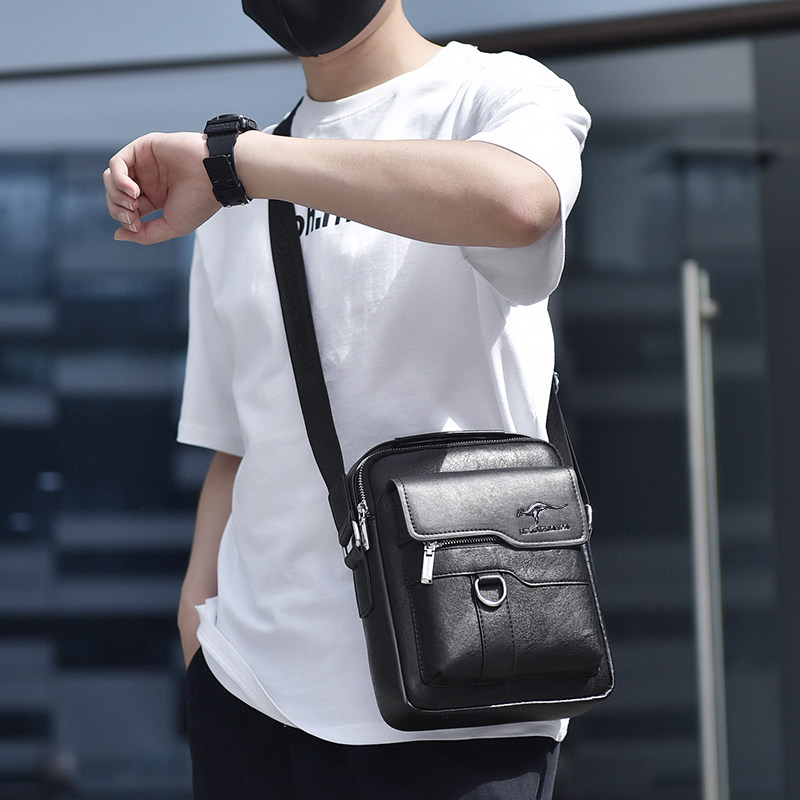 真皮质感商务小背包潮牌休闲多功能包袋男士包包竖款单肩斜挎包