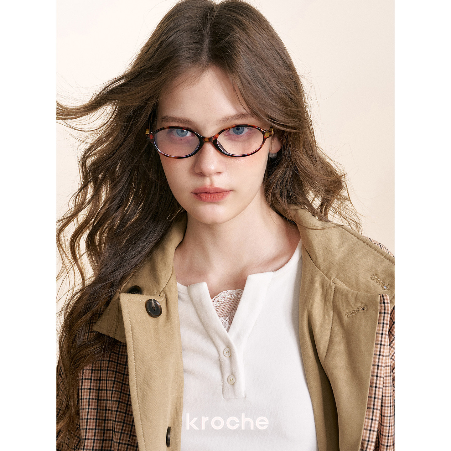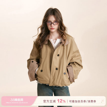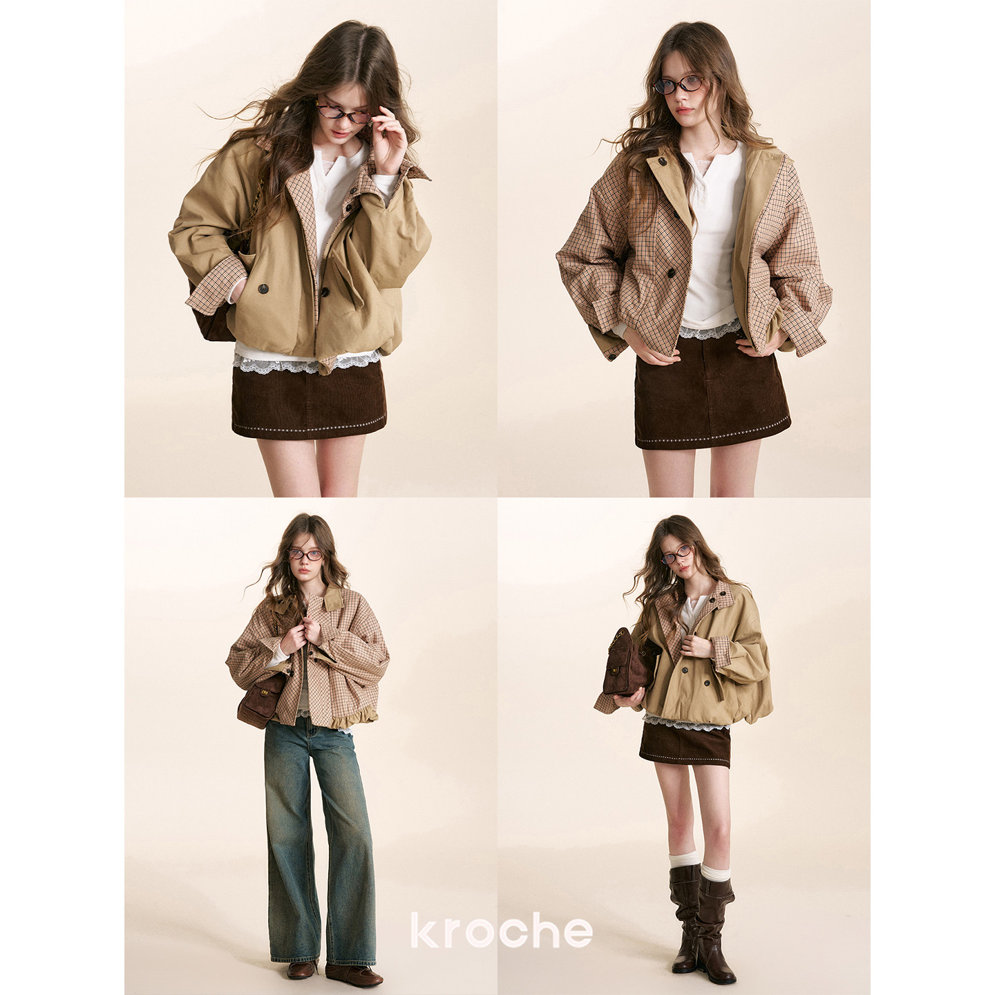 Kroche 复古格调 双面两穿翻领格纹夹棉廓形夹克棉服外套