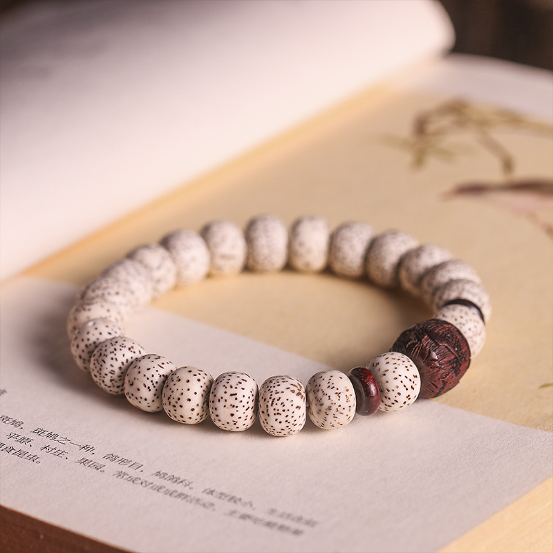 星月菩提根DIY创意素款禅意【年年有余】单圈手串高密籽原籽手链