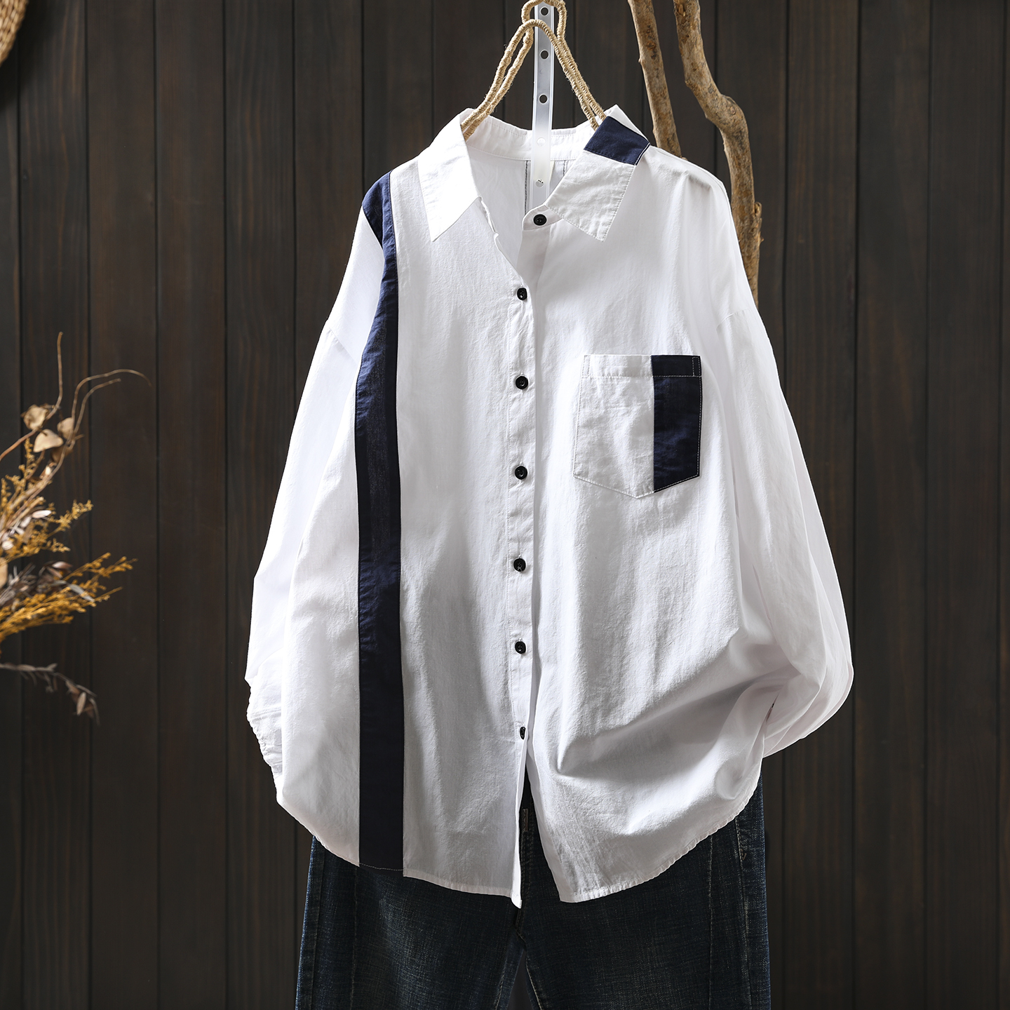 女士2025新款衬衫早秋季条纹拼接纯棉设计感小众时尚百搭长袖衬衫